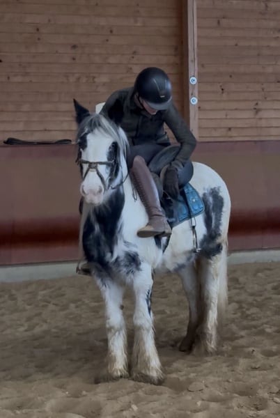 1000%iges FREIZEIT-VERLASSPFERD für ANFÄNGER Du suchst dein entspanntes Seelenpferd? Dann könnte diese liebe und hübsche 7 jährige Irish Cob Stute genau die richtige Begleiterin für dich sein. Mit ihrer hübschen Farbgebung ist sie nicht nur ein absoluter Eyecatcher sondern überzeugt auch mit einem charmanten, liebevollen Wesen, das direkt ins Herz geht. Sie bringt viel Ruhe mit, die sofort Vertrauen schafft, ob in der Halle oder im Gelände. Ein echtes Verlasspferd, das mit ihrer entspannten Art jeden Tag schöner macht. Sie liebt Kinder und ist mit ihnen besonders umsichtig. Unsicheren Reitern gibt sie durch ihre entspannte Art ein geborgenes und sicheres Gefühl. Bei uns lief sie bereits ab und zu im Kinderreitunterricht sowie regelmäßig im Unterricht mit erwachsenen Anfängern. Eckdaten: • Ca. 1,42 m , kräftig, kompakt, stabil & bequem, auch für Erwachsene • Super brav, egal ob Gelände oder Halle, sicher im Straßenverkehr • Verlade- und schmiedefromm • Kennt Offenstall, Box mit Paddock & Herdenhaltung • entspannte Persönlichkeit, dabei zuwendungsliebend & loyal • Inkl. kleine AKU ohne Befund Ein Pferd, das nicht laut, sondern leise begeistert. Eine gute Beratung für unsere Kunden liegt uns sehr am Herzen. Daher planen Sie für einen Besuchstermin mit Vorreiten und Probereiten 1-2 Stunden ein. Für das erste Pferd berechnen wir 35€ , jedes weitere Pferd 20€. Hierfür bitten wir um Verständnis.
