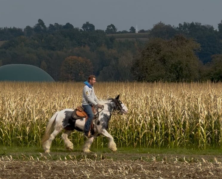 Traumpferd mit Herz – Bildhübsche Irish Cob Stute Du suchst nicht einfach ein Pferd? Du suchst dein Seelenpferd? Dann könnte diese liebe und hübsche 7 jährige Irish Cob Stute genau die richtige Begleiterin für dich sein. Mit ihrer hübschen Farbgebung ist sie nicht nur ein absoluter Eyecatcher sondern überzeugt auch mit einem charmanten, liebevollen Wesen, das direkt ins Herz geht. Sie bringt eine beeindruckende Ruhe mit, die sofort Vertrauen schafft, ob auf dem Platz, in der Halle oder im Gelände. Ein echtes Verlasspferd, das mit ihrer entspannten Art jeden Tag schöner macht. Sie liebt Kinder und ist mit ihnen besonders umsichtig. Unsicheren Reiter/ innen gibt die durch ihre entspannte Art ein geborgenes und sicheres Gefühl. Eckdaten & Highlights: • Ca. 1,44 m , kräftig, kompakt, stabil & bequem • Super brav, egal ob Gelände, Platz oder Halle, sicher im Straßenverkehr • Verlade- und schmiedefromm • Kennt Offenstall, Box mit Paddock & Herdenhaltung • Chillige Persönlichkeit, dabei zuwendungsliebend & loyal • Inkl. kleine AKU ohne Befund Ein Pferd, das nicht laut, sondern leise begeistert. Das nicht aufdrängt, sondern mit Ruhe gewinnt. Man verliebt sich nicht nur in ihr Aussehen sondern auch in das sichere Gefühl, das sie einem gibt. In eigener Sache: Professionelle Ausbildung und artgerechte Haltung – Qualität hat ihren Preis Die Ausbildung eines Pferdes erfordert nicht nur Fachwissen, sondern auch viel Zeit, Geduld und Erfahrung. Als spezialisierter Zucht- und Ausbildungsbetrieb für Freizeit- und Verlasspferde legen wir größten Wert auf eine vielseitige, pferdegerechte Ausbildung, die unsere Tiere bestmöglich auf ihr zukünftiges Leben als zuverlässige Freizeitpartner vorbereitet. Unsere Pferde wachsen unter artgerechten Bedingungen mit viel Bewegungsmöglichkeiten auf, was sich positiv auf ihre physische und mentale Entwicklung auswirkt. Wir investieren in eine fundierte, nachhaltige Ausbildung, die jedem Pferd die Zeit gibt, die es braucht, um sich optimal zu entwickeln. Daher bitten wir um Verständnis, dass unsere Verkaufspreise nicht verhandelbar sind. Sie spiegeln die Qualität, Sorgfalt und den hohen Standard wider, den wir in unsere Arbeit und somit auch in ihre Sicherheit investieren. Wenn Sie Wert auf ein gut ausgebildetes und artgerecht gehaltenes Pferd legen, sind Sie bei uns richtig.