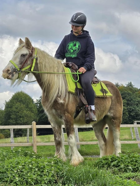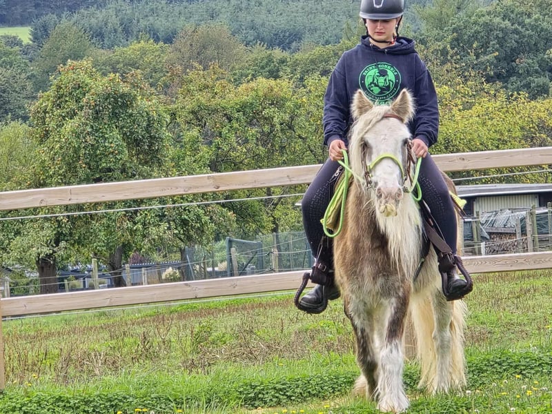 Tinker mare in a beautiful color Mare for leisure and trail riding* *Age*: 6 years, ridden *Height*: approx. 1.40 m *Equipment*: E-pass, microchip, and veterinary check available *Price*: €4,900 A beautiful mare that is ideally suited for trail and leisure riding. She is a versatile leisure horse, well-suited for both English and Western riding. She has a great, balanced temperament and feels comfortable in a herd, but is also well-adjusted in a stable. ### *What sets her apart:* - Used to open stable and herd living; box living is also no problem - Ideal for leisure and trail riders - Very balanced and uncomplicated to handle *Interested?* Feel free to call us at *0171-4001968* (daily from 8 AM to 8 PM). *Please no emails or WhatsApp, only calls!* *Additional Information:* - Accessories and transport can be organized at a low cost. - Our farm shop offers a small selection of used Western saddles. - *Installment payment is not possible.* *Customer Service:* - Every customer receives a contractually guaranteed *exchange right of three months.* - A trial ride with us is possible so you can get to know your dream horse. For €35, you can ride, have her ridden for you, go for a walk, or more. If desired, you can also test a second horse for €25. This amount will of course be deducted from the purchase price of a horse on the same day. *Special Features:* - If picked up immediately with a horse trailer, you will receive *a discount of €100.* - We conduct the sale with a transparent trial ride to ensure that it is the right horse for you. *Legal:* - We are the sole and unrestricted owners of the images; the image rights belong to us. *Unauthorized use of the images is prohibited.* - Please note that this is a living horse. Our information is based on the impressions of the caretaker and does not represent guaranteed characteristics. - Advertisements will be deleted immediately once the horses are sold. *Interested?* Feel free to call us at *0171-4001968* (daily from 8 AM to 8 PM). *Please no emails or WhatsApp, only calls!*