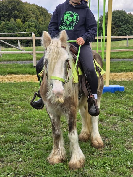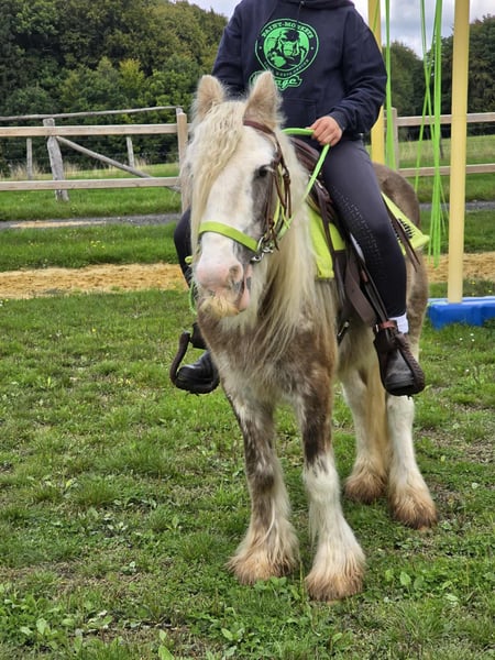 Jument Tinker de belle couleur Jument pour loisirs et randonnée* *Âge*: 6 ans monté *Taille*: environ 1,40 m *Équipement*: Passeport électronique, micropuce et contrôle vétérinaire disponibles *Prix*: 4 900 € Une belle jument qui convient idéalement pour la randonnée et l'équitation en extérieur. C'est un cheval de loisir polyvalent, parfaitement adapté à l'équitation anglaise comme western. Elle a un caractère équilibré et se sent bien en groupe, mais elle est également à l'aise dans son box. ### *Ce qui la distingue :* - Habituée à vivre en stabulation libre et en troupeau, la vie en box ne pose également aucun problème - Idéale pour les cavaliers de loisirs et de randonnée - Très équilibrée et facile à manipuler *Intéressé(e) ?* N'hésitez pas à nous appeler au *0171-4001968* (tous les jours de 8h à 20h). *Pas de mails ou WhatsApp, uniquement des appels !* *Informations supplémentaires :* - Accessoires et transport peuvent être organisés à bas prix. - Notre magasin à la ferme propose une petite sélection de selles western d'occasion. - *Le paiement en plusieurs fois n'est pas possible.* *Service pour les clients :* - Chaque client bénéficie d'un *droit de retour contractuel de trois mois.* - Un essai de monte chez nous est possible, afin que vous puissiez rencontrer votre cheval de rêve. Pour 35 euros, vous pouvez monter, vous faire montrer le cheval, faire une promenade ou plus. Sur demande, vous pouvez également tester un deuxième cheval pour 25,-. Ce montant sera bien entendu déduit lors de l'achat d'un cheval le même jour. *Particularités :* - En cas de retrait immédiat avec un van à chevaux, vous bénéficiez *d'une remise de 100 euros.* - Nous effectuons la vente avec un essai transparent, afin de nous assurer que c'est le bon cheval pour vous. *Aspects juridiques :* - Nous sommes les seuls et uniques propriétaires des images ; les droits d'image nous appartiennent. *L'utilisation des images par des tiers est interdite.* - Veuillez noter qu'il s'agit d'un cheval vivant. Nos informations sont basées sur les impressions du soigneur et ne constituent pas des caractéristiques garanties. - Les annonces seront immédiatement supprimées dès que les chevaux sont vendus. *Intéressé(e) ?* N'hésitez pas à nous appeler au *0171-4001968* (tous les jours de 8h à 20h). *Pas de mails ou WhatsApp, uniquement des appels !*