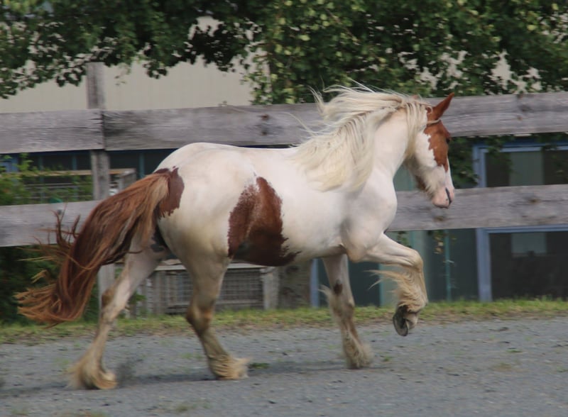 Ausdrucksstarke Irish Cob Stute sucht neue Herausforderung Zum Verkauf steht unsere 9-jährige Irish Cob Stute mit deutschen Papieren und deutscher Zucht. Als Fohlen wurde sie prämiert – ein Qualitätsmerkmal, das sich bis heute in ihrem Gebäude zeigt. Warum sie abgegeben wird: Der Verkauf erfolgt nicht aus der Not heraus, sondern weil sie charakterlich nicht zu unserer Araberherde passt. Leider mobben unsere Araber das sensible Mädchen, weshalb wir ihr eine harmonischere Umgebung wünschen. Ihr Können: Die Stute wurde gebisslos angeritten und beherrscht das Pferde-Einmaleins souverän. Sie zeigt sich unerschrocken und mutig, geht fleißig vorwärts im Gelände ohne durchzugehen und arbeitet auch in der Bahn konzentriert mit guter Selbsthaltung. Durch ihre überragenden Bewegungen eignet sie sich hervorragend für klassisches Reiten oder den Fahrsport. Besondere Qualitäten: Anders als viele ihrer Rasse zeigt sie keine typischen Gebäudemängel. Ihr Rücken ist gut bemuskelt und elastisch, auch im Lendenbereich. Die Halsung ist optimal proportioniert, und ihre natürliche Aufrichtung macht sie trotz ihrer Größe von ca. 140 cm zu einem idealen Damenreitpferd, das auch größere Reiter problemlos trägt. Haltung & Gesundheit: Sie ist sowohl Offenstall als auch Box und Weide gewohnt, läuft barhuf und kommt mit festem Untergrund gut zurecht. Beschlag ist bei Bedarf möglich. Aktuell ist sie durch wenig Bewegung etwas rundlicher als auf den Fotos. Wichtiger Hinweis: Sie kann am Boden bei fremden Personen dominant reagieren und ist daher nicht für Kinder geeignet. Bei ernsthaftem Interesse freuen wir uns auf Ihre Kontaktaufnahme. Gerne können Sie auch mit ihrer aktuellen Reiterin sprechen. Ein Verbleib im gewohnten Umfeld ist nach Absprache möglich. Preis: VB – Qualität hat ihren Wert. Unten genannte Telefon Nummer für WhatsApp verwenden. Danke.