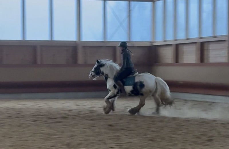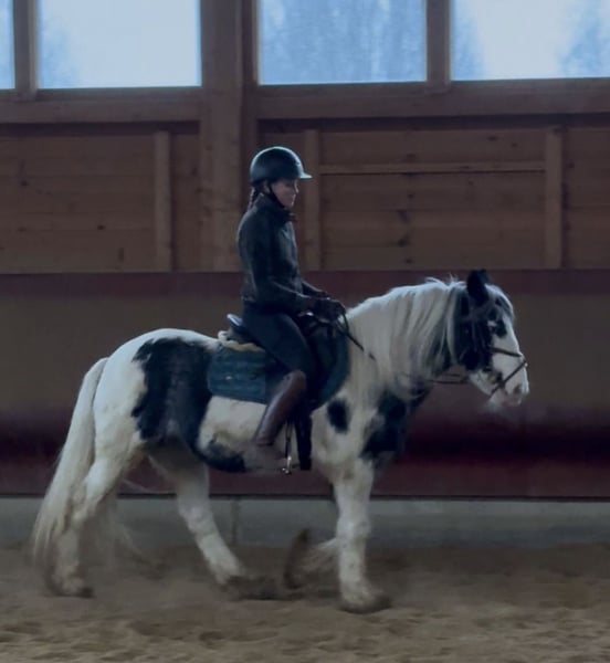 Niezawodne, idealne do rekreacji i dla początkujących – koń na relaksujące chwile Szukasz spokojnego partnera do jazdy, który stanie się Twoim zaufanym towarzyszem? Ta urocza, 7-letnia klacz Irish Cob może być właśnie tym idealnym kompanem, którego szukasz. Dzięki pięknej urodzie nie tylko przyciąga wzrok, ale także zachwyca swoim czarującym, pełnym ciepła usposobieniem, które od razu zdobywa serce. Wprowadza spokój i pewność siebie, zarówno w hali, jak i na terenie. To prawdziwy koń na relaks, który swoim wyluzowanym zachowaniem sprawia, że każdy dzień staje się przyjemniejszy. Kocha dzieci i jest wobec nich szczególnie troskliwa. Dla niepewnych jeźdźców zapewnia poczucie bezpieczeństwa i komfortu dzięki swojemu spokojnemu charakterowi. U nas już od czasu do czasu uczestniczyła w zajęciach z dziećmi oraz regularnych lekcjach z początkującymi dorosłymi jeźdźcami. Dane techniczne: • około 1,42 m, mocna, zwarta, stabilna i wygodna, także dla dorosłych • bardzo posłuszna, niezależnie od terenu czy hali, bezpieczna na drodze • przyzwyczajona do załadunku i podkuwania • zna stajnię otwartą, boks z paddockiem i utrzymanie w stadzie • spokojna osobowość, jednocześnie pełna czułości i lojalna • w cenie małe badanie AKU bez wykrytych nieprawidłowości Koń, który nie krzyczy, lecz cicho i skutecznie zachwyca. Dbamy o jak najlepszą obsługę naszych klientów. Prosimy o zarezerwowanie wizyty z jazdą próbną i przedjazdową na 1-2 godziny. Za pierwszego konia pobieramy opłatę 35 €, za kolejne 20 €. Dziękujemy za wyrozumiałość.