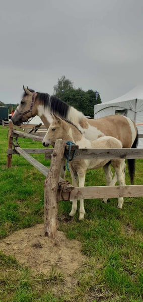 Heavenlysmiles Jolly Jolly ist unsere hypoallergene Curly Horse Stute. Sie ist 1,55 m/1,58 m groß und feiert diesen Sommer ihren achten Geburtstag. Jolly ist eine sehr gute Mutter und hat bereits vier Fohlen zur Welt gebracht. Ihr letztes Fohlen, King, ist gerade geboren, und Jolly ist nun bereit für eine fantastische Reitkarriere 😉 Sie ist angeritten und kann geritten werden, hat aber noch nicht viel Reiterfahrung, da sie unsere Zuchtstute war. Sie ist sehr brav und überaus lieb. Sie wurde immer täglich betreut und war immer von Kindern umgeben. Sie war immer bei uns auf dem Bauernhof, kennt also die Maschinen und die Hoftiere. Ob Sie mit dem Pferdeanhänger zur Show, zum Tierarzt oder einfach nur zum Schwimplatz fahren – Jolly ist rundum zufrieden! Am Juni '24 war Jolly mit fohlen zum Bauern- und Landfest in Aalten. Es waren Tausende von Besuchern da, und er genoss jeden Tag die ganze Aufmerksamkeit. Er kam immer wieder zu allen, um zu kuscheln! Die ungewöhnlichen Dinge wie Musik, Fahnen, Sonnenschirme, Traktorparaden – zu viele, um sie alle zu erwähnen – fand er alles super! Auch die Vorführung im großen Ring zur Förderung der Curly-Rasse und der große Applaus waren für Jolly und Katy kein Problem! Für das Fest und abends zur Unterkunft musste er mehrmals täglich auf den Anhänger. Kurz gesagt: Ein fantastisches Curly Horse, an dem Sie viel Freude haben werden! Wir fragen 12.000 € (ohne MwSt.) für sie. Für weitere Informationen senden Sie mir bitte eine Nachricht