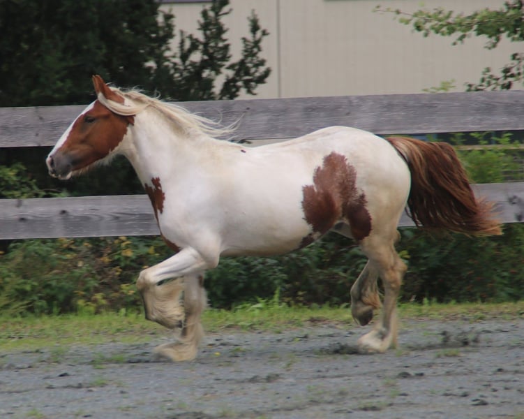 Jument Irish Cob expressive à la recherche d’un nouveau défi À vendre, notre jument Irish Cob de 9 ans, titulaire de papiers allemands et issue d’élevage allemand. En poulain, elle a été primée — une marque de qualité qui se reflète encore aujourd’hui dans sa silhouette. Raison de la vente : La vente n’est pas motivée par une nécessité urgente, mais parce qu’elle ne correspond pas au caractère de notre troupe d’Arabes. Malheureusement, nos Arabes intimident cette jument sensible, c’est pourquoi nous souhaitons lui offrir un environnement plus harmonieux. Ses compétences : La jument a été monté sans mors et maîtrise parfaitement les bases du dressage. Elle se montre intrépide et courageuse, avance volontiers en extérieur sans se cabrer, et travaille également en carrière avec concentration et bonne posture. Grâce à ses mouvements exceptionnels, elle est idéale pour le dressage classique ou le sport de traction. Qualités particulières : Contrairement à beaucoup de ses congénères, elle ne présente pas de défauts structurels typiques. Son dos est bien musclé et souple, y compris au niveau lombaire. Son encolure est proportionnée de manière optimale, et sa posture naturelle lui confère, malgré ses environ 140 cm au garrot, une allure élégante et en fait une monture idéale pour une cavalière de taille plus grande, capable de porter aisément des cavalières plus lourdes. Hébergement & santé : Elle est habituée à vivre en paddock, en box et en pâture, marche pieds nus et s’adapte bien aux sols durs. Un ferrage est possible si nécessaire. Actuellement, elle est un peu plus ronde qu’en photo, en raison d’un peu moins d’exercice. Important : Elle peut réagir de manière dominante au sol face à des personnes qu’elle ne connaît pas, et n’est donc pas adaptée aux enfants. Si vous êtes sérieusement intéressé, nous serions heureux de recevoir votre contact. Vous pouvez également parler avec sa cavalière actuelle. Un maintien dans son environnement habituel est envisageable après accord. Prix : À discuter – La qualité a son prix. Veuillez utiliser le numéro de téléphone ci-dessous pour WhatsApp. Merci.