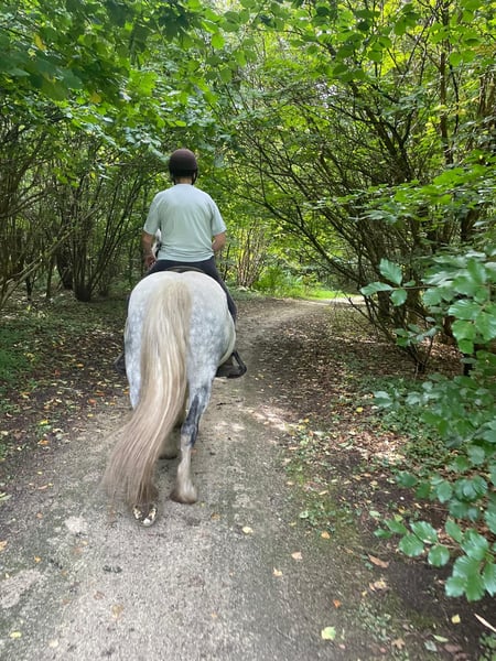 This beautiful young mare is looking for a new five-star home. Coco joined me as a yearling from Ireland. She has learned all the basics with me. Eventually, I had to sell her due to a divorce, and she spent two years in Belgium, where she continued to be ridden and was introduced to driving. Due to the owner's age, she has now returned to me. However, I am unable to keep her and am therefore seeking a new home for her. Coco is a sweet, gentle mare who is also quite confident when needed. She is also a true Tinker, and can sometimes be a bit clumsy. She has always been kept with other horses and has no health issues. She tested negative for PSSM. Under saddle, she is ridden bitless and with a hackamore or bitless bridle. Currently, she is being ridden bitless. In the arena, she is perfectly fine riding alone, but on a trail ride, she still benefits from the support of another horse. Coco does need someone confident and able to take control, as she can sometimes be a bit unsure. Who has space in their heart for this lovely girl?