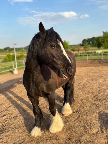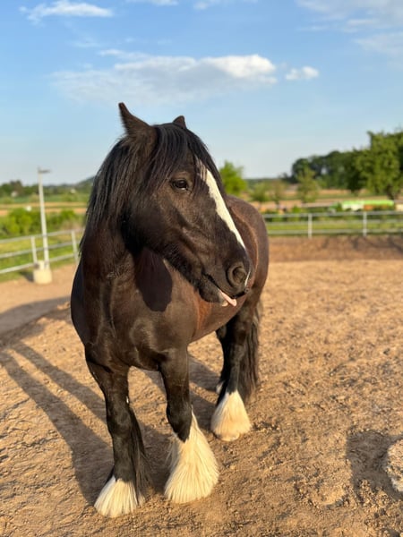 🌿 Nur in allerbeste Hände: Wundervolle Tinker Stute sucht neues Zuhause 🌿 Schweren Herzens suchen wir für unsere 9-jährige Tinker Stute Gill ein neues Zuhause. Sie ist seit 5 Jahren Teil unserer Familie und hat unsere Tochter zuverlässig und liebevoll begleitet. Nun ist unsere Tochter ihr leider entwachsen – sowohl von der Größe als auch von den reiterlichen Ambitionen. Gill ist ein absolutes Verlasspony: ✨ kinderlieb und geduldig ✨ gelassen und nervenstark ✨ lässt sich durch nichts aus der Ruhe bringen ✨ brav im Umgang und unter dem Sattel ✨ sicher in allen Gangarten ✨ regelmäßig und solide geritten Sie ist ideal für Kinder, Anfänger oder Wiedereinsteiger, die ein ehrliches, gutmütiges und gepflegtes Pony suchen, auf das man sich jederzeit verlassen kann. Aktuell steht Gill in Offenstallhaltung und ist das Leben im Herdenverband gewohnt. 👉 Wir geben sie ausschließlich in liebevolle und verantwortungsvolle Hände ab – ihr Wohl steht für uns an erster Stelle. Bei ernsthaftem Interesse freuen wir uns über eine persönliche Nachricht.