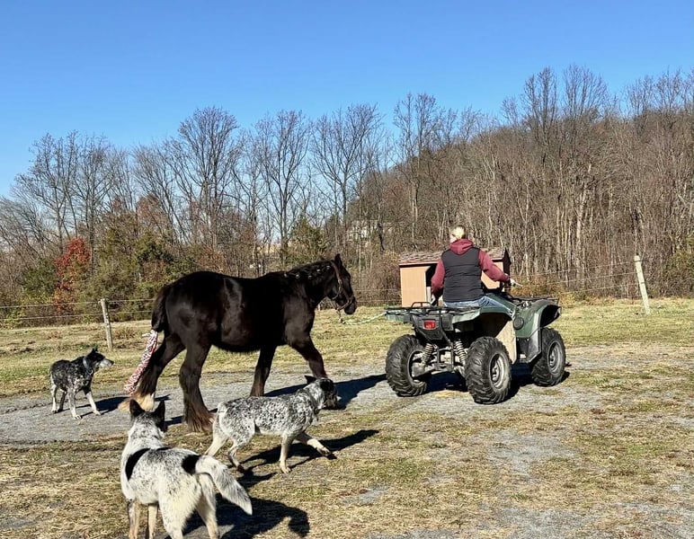 "AVAILABLE ON ONLINE HORSE AUCTION AT www DOT MagicHorseAuction DOT com BIDDING OPEN NOW thru TUESDAY | December 9TH! - BUY IT NOW AVAILABLE! *Final price will be determined on auction site* CONSIGNOR CONTACT INFO: Roni Renee Turner 610-806-2613 LOCATION: New Holland, PA “Leafy Lane Slim Shady” aka “Shady”, is a registered Gypsy Vanner colt, foaled on April 16th 2024, currently standing 13hh, who already owns a lush mane, tail, and feathers. If you are looking for a phenomenal brain, wonderful conformation, great breeding, and the looks to pair, here is your guy. Not only is Shady as friendly as they come, he has a very calm demeanor and an old soul. This boy was quite literally “born broke”. I really cannot say enough of good things about Shady, he is going to make the perfect partner for someone who is looking for a loyal and gentle friend. In the barn, Shady has zero bad habits. He can live in or out, goes out with others happily and has zero bad stall habits. He is quiet in his stall, neat, and never complains or asks for anything. He can live out 24/7, he does not mind either way. Shady will always be the first one to greet you, he will follow you around like a puppy dog and loves attention. He cross ties and straight ties. Shady will stand on the cross ties all day long to be groomed, braided, loved on, you name it. He stands to be bathed as well. Shady is safe for absolutely anyone to work around. He is very gentle and safe for kids and beginners to work with. He doesn’t mind my rowdy dogs running all around his feet. He picks up his feet and is good for the farrier and vet. A crazy busy barn is not frightening to Shady, it is amusing and he will just sit there and chill and watch all of the commotion. Shady has excellent ground manners. He can be fully handled, led, caught, etc by beginners and children. He has had extensive ground work, and he was raised correctly. Shady has gone on hand walks through the woods, through trail obstacles, through water and fields, he is going to be an amazing trail partner in the future. The brain that this young man has, is just not comparable. Shady lunges, and listens to voice commands. He has been tacked several times and never once had a reaction. We have started him on ground driving as well; and again he caught right on and did what was asked. I don’t know if I have ever been around such a teachable yearling!! Shady has been through lots of desensitizing. He takes everything in stride and is pretty much unfazed by all of our crazy antics. He will walk over a tarp, even with it blowing right at him and getting caught on his legs. He doesn’t mind if the tarp is flapping 15’ in the air. He will play with a big ball, and doesn’t mind it being on or around him. We have waved a large flag all around him, he didn’t mind. He follows the wagon with a little “pony” in it, and was much more interested in eating the hay inside of the wagon lol. Atvs and other machinery? Traffic? No problem, he chases the Ranger in the pasture to catch us for hay. Lead him from the four wheeler. Dogs running all over? He doesn’t care. Cows? Cows are friends. Shady has also been introduced to trail obstacles such as walking through pool noodles, over ground poles, over flower boxes and even jumped a few cross rails in hand. He loads and trailers well, with or without company. Shady is going to be easiest guy to start, the hard part is done, here is a horse that is ready to start your way, and be your forever partner. Shady is sired by a stallion named “Monashee Toy Story”, a strapping sire who is beautiful marked. Also known as “Buzz” is considered a mini-Gypsy. He attended the 2023 Gypsy Vanner Congress and is known for his good demeanor and athleticism. Shady’s dam is named “Wellington Kenai”, who is a spitting image of Shady, with great conformation, big bone, and wonderful hair. She is a regular sized Gypsy. Shady is expected to finish at around 14.1-14.2hh. On his Sire’s side, the name “North Star Maestro” will be found, who is a significant representative of the GVH breed, possessing some of the best GV bloodlines. Shady’s top side also goes back to the famous “Bob The Blagdon”. On Shady’s bottom side, he goes back to “Romany King” and influential stallion known for his conformation, amazing temperament, and wonderful movement. Romany King earned a five star evaluation by the GVHS. Slim Shady has excellent breeding, in which has created an amazing all around yearling. Whether you are looking for an all around gelding or a herd sire, these bloodlines speak for themselves. Shady is PSSM1 n/n, FIS n/n, and a/a, E/e, N/W20. Here is a colt that is currently set up to head in absolutely any direction. He has been so wonderful to work with, teach, and have around. Shady is very intelligent, and loves to learn. I would love to have the opportunity to follow this boy and watch him grow and learn, I am very fond of him, the whole barn is. And while I would love to find him his forever person, I am not pressed to sell him, as I just know that he is going to be amazing and very easy to bring along. Please take the time to watch Shady’s full video to get a feel for the type of wonderful guy that he is. Please feel free to reach out for any further information. Shipping can be arranged anywhere.