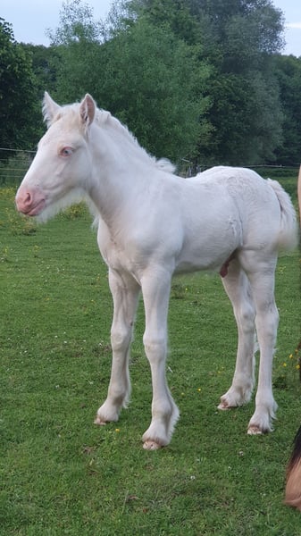 Bitte kompletten Text lesen ! Mr Nice Guy sucht noch ein tolles zu Hause mit viel Kuscheleinheiten und Zeit. Er ist am 4.5.25 geboren, wird im Endmaß ca 155cm erlangen ( derzeit ca 133 cm ) , er trägt die Farbe Cremello Tobiano (Gentest = CR/CR , TO/n , sowie PSSM/n ). Papiere mit Abstammung vom ICS Niederlande. Er wird mal ein richtig kräftiges Kerlchen bzw ist jetzt schon sehr kräftig gebaut. Bei uns wächst er im Offenstall mit Spielgefährten auf. Nun das wichtigste, Nice Guy ist dem Menschen gegenüber noch etwas schüchtern, dies liegt ausschließlich an mir , nicht an ihm ! Er hat auch keine schlechte Erfahrung gemacht. Dazu bei Interesse gern persönlich mehr. Er kennt es geputzt zu werden, lässt sich überall anfassen, Kids die ihn knuddeln ist auch kein Problem, am Halfter anfassen geht auch , allerdings Hufe geben und führen ist derzeit noch nicht möglich. Daher wird er bei jetziger Abgabe auch unter Wert abgegeben. Es benötigt wirklich nur ein bissen Zeit , garnicht viel Arbeit, nur leider fehlt mir die Zeit gerade total. Gern ein Termin vereinbaren und ihn persönlich kennenlernen. Platz vor Preis Ratenzahlung bei vernünftiger Anzahlung möglich