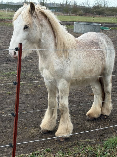 Stunning and extraordinary Tinker stallion!! He is 2 years old. A very well-behaved, gentle, and friendly young stallion with a rare and unique color that is difficult to describe: the color is called Fuchs-Sabino (appearing somewhat cream-colored with dark eyes!!!). He has grown up on pasture and has not experienced any negative encounters. He is familiar with having his hooves picked out and being led, but not much more. He enjoys a bit of play and grooming. He does not kick or bite. His expected height at maturity will be around 145 cm. Anyone interested in training such a wonderful stallion will find an unspoiled horse with unlimited potential. Please only serious inquiries. No questions about the final price, etc. Further details are gladly discussed over the phone.