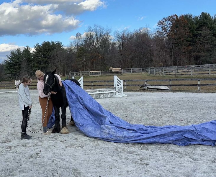 VERFÜGBAR bei der Online-Auktion auf www.MagicHorseAuction.com GEBOTE sind jetzt geöffnet und laufen bis Dienstag, 9. Dezember! – SOFORTKAUF MÖGLICH! *Der endgültige Preis wird auf der Auktionsseite festgelegt* VERKÄUFERKONTAKT: Roni Renee Turner, 610-806-2613 STANDORT: New Holland, PA „Leafy Lane Slim Shady“ alias „Shady“ ist ein registrierter Gypsy Vanner Hengstfohlen, geboren am 16. April 2024, derzeit ca. 13 Hand hoch, mit einer beeindruckenden Mähne, Schweif und Federbehang. Wenn Sie nach einem außergewöhnlichen Kopf, hervorragender Konformation, bester Abstammung und einem ansprechenden Äußeren suchen, ist er Ihr Mann. Shady ist nicht nur äußerst freundlich, sondern besitzt auch eine ruhige Ausstrahlung und eine weise, alte Seele. Dieser Junge wurde buchstäblich „von Anfang an bruch-sicher“ erzogen. Ich kann kaum genug Gutes über Shady sagen – er wird der perfekte Partner für jemanden sein, der einen treuen und sanften Freund sucht. Im Stall zeigt Shady keinerlei schlechte Angewohnheiten. Er kann drinnen oder draußen gehalten werden, lebt gern mit anderen zusammen und hat keine schlechten Stallgewohnheiten. Er ist ruhig im Stall, ordentlich und beschwert sich nie. Er kann 24/7 draußen leben, das ist ihm egal. Shady ist stets der Erste, der Sie begrüßt, folgt Ihnen wie ein Hund und liebt Aufmerksamkeit. Er kann an den Kreuzstricken und geraden Stricken angebunden werden. Er bleibt den ganzen Tag über auf den Kreuzstricken, um gepflegt, gebürstet, geliebt zu werden – was auch immer. Auch baden lässt er sich problemlos. Shady ist absolut sicher im Umgang für jedermann. Er ist sehr sanft und geeignet für Kinder und Anfänger. Er hat keine Probleme mit den lebhaften Hunden, die um seine Füße laufen. Er hebt die Beine für den Hufschmied und den Tierarzt. Ein hektischer Stall macht ihm nichts aus; er beobachtet das Ganze ruhig und entspannt. Shady hat vorbildliche Bodenmannieren. Er ist vollständig handhabbar, führbar, einfängbar – auch von Anfängern und Kindern. Er wurde umfangreich im Boden gearbeitet und wurde richtig großgezogen. Shady hat Spaziergänge im Wald gemacht, über Trail-Hindernisse, durch Wasser und Felder – er wird in Zukunft ein großartiger Trailpartner sein. Das Köpfchen, das dieser junge Hengst besitzt, ist einfach unvergleichlich. Shady kann lungiert werden und hört auf Stimmkommandos. Er wurde mehrfach eingeritten und reagierte stets vorbildlich. Auch das Bodenfahren haben wir mit ihm begonnen; er hat schnell gelernt und alles ausgeführt, was man von ihm wollte. Ich habe noch nie einen so lernfähigen Junghengst erlebt! Shady wurde vielfältig desensibilisiert. Er nimmt alles gelassen hin, ist kaum zu erschüttern von unseren verrückten Aktionen. Er geht problemlos über Planen, selbst wenn sie im Wind flattern und an seinen Beinen hängen bleiben. Das Flattern eines Tuchs in 5 Metern Höhe stört ihn nicht. Er spielt mit einem großen Ball und hat keine Probleme damit. Wir haben eine große Flagge um ihn herum geschwenkt, er hat es gelassen hingenommen. Er folgt einem Wagen mit einem kleinen Pony darin und ist dabei mehr am Fressen als an dem Wagen interessiert. ATV’s und andere Maschinen? Verkehr? Kein Problem – er jagt den Ranger im Paddock, um Heu zu holen. Führen Sie ihn vom Quad aus. Hunde, die überall herumlaufen? Egal. Kühe? Freunde. Shady wurde auch an Trail-Hindernisse gewöhnt, z. B. an das Durchqueren von Poolnudeln, über Bodenstangen, Blumentöpfe und sogar einige Crossrails in Hand. Er lädt gut auf den Anhänger und fährt problemlos mit, mit oder ohne Begleitung. Shady wird der einfachste Hengst zum Anreiten sein; der harte Teil ist bereits erledigt. Er ist bereit, nach Ihren Vorstellungen ausgebildet zu werden und wird Ihr lebenslanger Partner. Seine Abstammung: Seine Mutter ist „Wellington Kenai“, eine Gypsy-Vanner-Stute mit hervorragender Konformation, großem Knochenbau und prachtvollem Haar, sie ist eine durchschnittlich große Gypsy. Sein Vater ist „Monashee Toy Story“, ein kräftiger Hengst mit schöner Markung, bekannt als „Buzz“, gilt als Mini-Gypsy. Er war bei der Gypsy Vanner Congress 2023 und ist bekannt für sein ausgeglichenes Wesen und seine Athletik. Shadys Abstammung umfasst auch „North Star Maestro“, einen bedeutenden Vertreter der GV-Herde mit einigen der besten GV-Blutlinien. Außerdem führt er auf der mütterlichen Seite zu dem berühmten „Bob The Blagdon“. Shadys Nachkommen stammen von „Romany King“ ab, einem einflussreichen Hengst, bekannt für seine Konformation, sein großartiges Temperament und seine elegante Bewegung. Romany King erhielt eine Fünf-Sterne-Bewertung von der GVHS. Slim Shady zeichnet sich durch eine hervorragende Abstammung aus, die einen vielseitigen Junghengst geschaffen hat. Ob Sie einen Allround-Gelding oder einen Herdenhengst suchen – diese Blutlinien sprechen für sich. Shady ist PSSM1 n/n, FIS n/n, und a/a, E/e, N/W20. Hier ist ein Fohlen, das in jede Richtung gehen kann. Es war eine Freude, mit ihm zu arbeiten, ihn zu erziehen und in seiner Nähe zu sein. Shady ist sehr intelligent und liebt es zu lernen. Ich würde gerne die Entwicklung dieses Jungen verfolgen und zusehen, wie er wächst und lernt. Ich bin sehr an ihm und dem ganzen Stallteam hängen. Obwohl ich ihm gern sein Für-Immer-Person finden möchte, bin ich nicht eilig, ihn zu verkaufen, da ich weiß, dass er großartig sein wird und sehr leicht zu fördern ist. Bitte nehmen Sie sich die Zeit, Shadys vollständiges Video anzusehen, um einen Eindruck von diesem wunderbaren Kerl zu bekommen. Für weitere Informationen stehe ich gern zur Verfügung. Der Versand kann überall arrangiert werden.