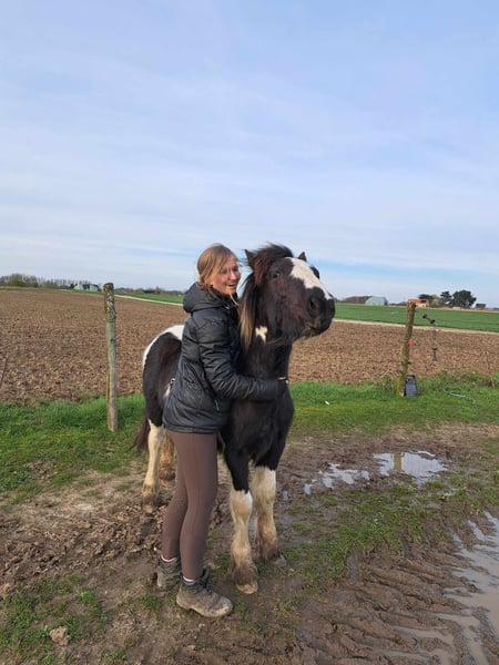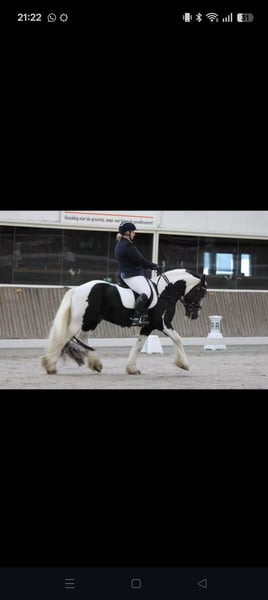 Helios is mijn eigen gefokte Irish cob hengst van mijn eigen Irish cob merrie. Voor een goed huisje bied ik Helios te koop aan omdat ik hem in de toekomst niet kan geven wat die nodig heeft. Helios (foto 1 tot en met 4) is de zoon van Iona's Nolan (foto 5 en 6) en mijn eigen merrie (foto 7 tot en met 9). Hij wordt in april 2026 3 jaar en kan dan langzaam aan beginnen met zijn toekomst. Voor nu is hij nog hengst, dus een toekomst als dekhengst zou ook nog mogelijk zijn. Vader loopt nu Z1 dressuur en ik heb met moeder in de trec sport gereden. Karaktereigenschappen die beide ouders hebben en die Helios nu ook laat zien zijn: een brave aanhankelijke hengst, komt naar je toe als je hem roept, slim in positieve zin (denkt mee, snapt dingen snel), trouw en nuchter. Hij komt vanaf kleins af aan al in de hand, is elke 3 maanden bij de hoefsmid geweest, loopt mee voor een wandeling weg van zijn kudde en het begin van sturen (bitloos met touw halster vanaf de grond) begint hij ook te snappen. Aangezien Helios nog een jonge hengst is en zijn ouders beide braaf, maar wel wat pit hebben, verwacht ik dat hij wel potentie heeft voor de fanatiekere recreatieve ruiter of zelfs in de sport. Enkel voor een goed huisje wordt Helios overwogen. Hij wordt nog met liefde gehouden en op zijn tempo verder opgeleid. Stuur me gerust een berichtje bij interesse of vragen.