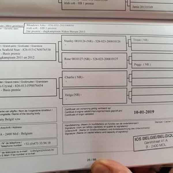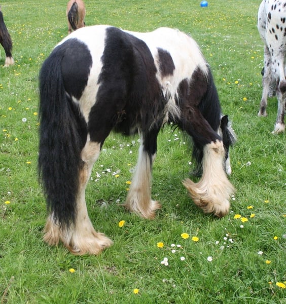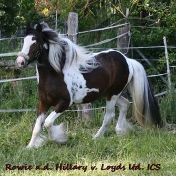 Ramazotti Potentiële hengst kandidaat met het predicaat Type Traditioneel. Zijn kleur is als glanzend donkere chocolade (ws Smoky Black), Tricolor hengstveulen krijgt Achatscheckung (brede donkere rand om de aftekening) evenals Ink-Spots op het lichaam, nu als veulen al zeer, zeer harig, zijn pluimen liggen ver op de grond !! en zeer sterke botstructuur, top bouw, schofthoogte om 1,48-1,50m beide ouders PSSM vrij. M: Rowie Bay Tricolor met Ink-Spots (Tom Price Bloed en kleindochter van Loyds Elite hengst ICS) V: Igor De Saint Feuillien Silverdapple zoon van Bisgaards Victor en o.a. Seafield Stan, Nydalls Black Jack, bloedlijn via Otis naar de legendarische The Midget) !! Kan op verzoek ook nog geschoren worden. Tel. 0152/ 55341095