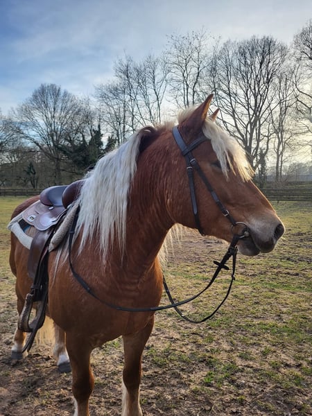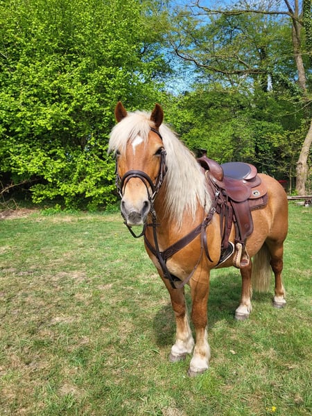 Met pijn in mijn hart bied ik mijn Haflinger ruin Jores te koop aan, omdat wij helaas geen match meer zijn. Jores is een 10-jarige ruin van ongeveer 1.45 m hoog. Hij is een ouderwets type Haflinger, mogelijk met een vleugje trekpaard in zijn bloed (ingeschreven bij het ICS). Hij heeft een mooie donkere vacht en een krachtige, compacte bouw. Jores is een gevoelig en onzeker paard dat veel kan opkroppen en in spannende situaties snel in de “freeze-stand” kan gaan. Ik heb hem ruim een jaar geleden als groen, maar beleerd paard gekocht. In die periode is hij onder andere mee geweest naar het bos en dressuurmatig gereden. In het verleden heeft hij naar zeggen ook voor de koets gelopen. In april heb ik helaas een harde val van hem gemaakt (met blijvende schade aan mijn schouder), wat ons beiden mentaal een tik heeft gegeven. Ondanks dat is hij daarna nog onder het zadel geweest, maar hij bouwde daarbij veel spanning op. Daarom is hij vervolgens eerst volledig vanaf de grond opgepakt. Hij heeft als projectpaard gewerkt bij een student van de opleiding Natural Horsemanship. Hierbij is er gewerkt aan grondwerk, loswerken en lange lijnen. Het plan was om hem daarna weer rustig op te pakken onder het zadel, maar door mijn blessure en de onzekerheid die daarbij komt kijken, voel ik dat ik hem hierin niet meer kan geven wat hij nodig heeft (een zelfverzekerd persoon waar hij op kan bouwen). Hij voelt mijn spanning feilloos aan. Jores heeft daarnaast ook ervaring met het werken als handpaard; zowel als meelopend handpaard naast een rijdend paard als zelf onder het zadel met een handpaard erbij. Daarnaast heeft Jores meegedraaid in verschillende coachsessies. Opvallend is dat hij extraverte, dominante persoonlijkheden liever uit de weg gaat, maar juist toenadering zoekt tot de introverte en rustige mensen. Hij is eerlijk, zacht in contact en werkt graag als er iets te doen is, staat hij vooraan. Jores voelt zich op zijn best wanneer hij lekker in zijn vel zit (een paar kilootjes lichter) en zowel fysiek als mentaal wordt uitgedaagd. Hij heeft behoefte aan afwisseling en duidelijke begeleiding. De afgelopen tijd hebben we lichte vrijheidsdressuur opgepakt, wat hij zichtbaar leuk vindt om te doen. Hij denkt graag mee, pakt nieuwe oefeningen snel op en is erg leergierig. In de kudde gaat hij makkelijk samen met andere paarden. Hij loopt rustig de trailer op en gaat hier wekelijks mee het bos in aan de hand met een groep. Alleen op pad gaan gaat ook goed, mits de begeleider zelfverzekerd is. Ik zoek voor hem een zekere, rustige eigenaar. Rijden mag geen eerste doel zijn; vertrouwen, verbinding en duidelijkheid staan voorop. Vanuit daar kan uiteraard gekeken worden of het rijden in de toekomst weer passend is. Wat ik belangrijk vind: * Een stabiele, zelfverzekerde begeleider Ik gun hem een plek waar hij mag landen, verder mag groeien in vertrouwen en gewaardeerd wordt om wie hij is. Stuur gerust een privébericht voor meer informatie.