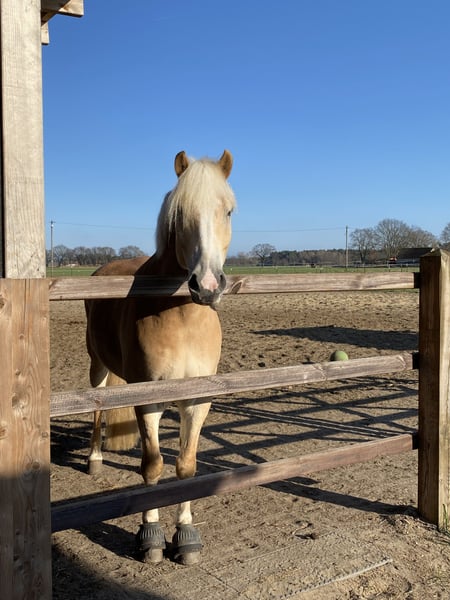 Vanwege veranderingen in mijn persoonlijke levenssituatie ben ik op zoek naar een nieuw forever-home voor mijn 10-jarige Haflinger ruin „Niro“, met een stokmaat van 1,54 m. Niro is een zeer mensgericht, stout-charmant ponyhengst met het typische Haflinger-karakter en een flinke dosis koppigheid. Hij is braaf in de omgang, maar stelt soms graag vragen en heeft duidelijke instructies nodig. Als hij die krijgt, is hij een trouwe vriend en staat hij voor alles open. In het verleden heeft Niro helaas wat pech gehad met zijn gezondheid en brengt daarom een pakketje mee: Op jonge leeftijd had Niro voorvoet-hufgewrichtbanden gescheurd, maar door goede veterinaire en orthopedische zorg is dit nooit weer problematisch geworden en volledig genezen. Later heeft hij aan beide knieën (gescheurde ligamenten) verwondingen opgelopen, die achtereenvolgens in een gespecialiseerde orthopedische kliniek zijn geopereerd. Omdat het trainen na de laatste operatie niet volgens plan verliep, mocht Niro daarna twee jaar op de wei doorbrengen. Daarnaast is hij positief getest op PSSM2/MIM, maar hij heeft hiervoor geen speciale managementmaatregelen nodig. Sinds augustus vorig jaar heeft Niro zijn rustperiode beëindigd en staat hij in een kleine ruinengroep in een open stal. Momenteel wordt hij 'tensengral' (grondwerk) getraind en doet dit goed. Een volledige belasting onder het zadel sluit ik echter uit in het belang van het paard. Daarom wordt hij als bijzetter aangeboden; onder bepaalde omstandigheden kan ik me ook rustige, incidentele buitenritten voorstellen. Niro loopt momenteel naaktvoet, maar afhankelijk van de bodemomstandigheden kan hij eventueel bescherming of hoefijzers nodig hebben. Afhankelijk van de groepssamenstelling is hij meestal ranghoog, en hij heeft de typische Haflinger-stumpfheid. Hij heeft al eens met merries samen gestaan en heeft tot nu toe niet gesprongen. Niro laat zich goed laden, is braaf bij de hoefsmid en wordt natuurlijk regelmatig ontwormd, gevaccineerd en chiropractisch gecontroleerd. Wat ik zoek: Een nieuw thuis waar de focus niet op rijden ligt, omdat zijn knieën dat niet toelaten. Ik zoek iemand die zich bewust is van de verantwoordelijkheid en plezier heeft in grondwerk en wandelingen. Omdat Niro erg intelligent is, kan ik me ook vrijetijdstrainingen zoals vrijheidsdressuur of cirkeltraining goed voorstellen. Rustige (stap-)ritten zouden hem zeker ook aanspreken (mits zijn gezondheid het toelaat!), maar zien we vooral als een pluspunt. Niro is voor zijn pauze braaf alleen en in groep op pad geweest, maar is lange tijd niet bereden. Hij kent wandelingen met honden. Niro geeft de voorkeur aan een openstal met een diervriendelijk en gezond voerregime of een alternatief met een hele dag uitloop. Hij heeft een assertief karakter en moet daar zeker mee om kunnen gaan. Voor mij is het allerbelangrijkste dat hij een nieuw eigenaar vindt die, bij voorkeur, Haflinger-liefhebber is, het ras kent en het welzijn van het dier vooropstelt. Ik wil absoluut niet dat hij een soort wandelende trofee wordt. Een voorafgaande huisbezoek en een uitgebreide kennismaking voor beide partijen zijn daarom onmisbaar. Misschien is er iemand daarbuiten die zich aangesproken voelt en een passend thuis kan bieden. Locatie is 29352. Het gaat hier niet om een dringende noodopvang.