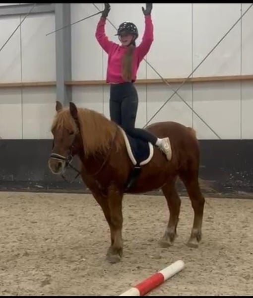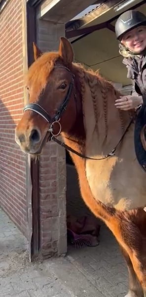 Onze Jimmy is echt een pareltje op vier benen, en met zijn 10 jaar en een hoogte van ongeveer 1,52 m is hij precies de juiste maat voor recreatief genieten en knuffelmomenten. Hij is een Karakatschan-paard (ook bekend als Karakatschan-pony), een van de oudste en meest weerbare paardenrassen van Europa. Zijn mix onderscheidt zich niet alleen door zijn klassieke uitstraling, maar vooral door zijn ontzettend lieve en vriendelijke karakter, dat hem tot een echte publiekslieveling maakt. Jimmy belichaamt het typische pony-type in elke zin en is simpelweg ontzettend knuffelig, wat hem bij ons ook tot een favoriet maakt onder tieners die momenteel met hem rijden. Zijn rustige aard maakt dat je er echt van kunt genieten. Natuurlijk brengt een paard als Jimmy ook een flinke portie persoonlijkheid mee, inclusief de beroemde pony-eigenwijsheid. Maar dat maakt de omgang met hem juist zo charmant, want zelfs als hij eens zijn zin doordrukt en met een klein trotse buiging de kont omhoog doet, is dat nooit wild, maar gewoon grappig en zorgt voor een goede sfeer in de stal. Wie op zoek is naar een eerlijk, lief paard met karakter dat voor ieder plezier te hebben is, zal meteen verliefd worden op deze kleine kerel. Daarnaast rijdt Jimmy liever ontspannen in het terrein. Alle informatie is zonder garantie, sociaal in een kudde, en hoefsmidvriendelijk. Neem gerust contact op (ALLEEN) via WhatsApp: 01703718888 Locatie: 41334 Kaldenkirchen, geen beschikbaarheid. Geen rente. •Proefrit op maandag tot vrijdag €25 • Za & Zo, feestdagen €30 •Voorstelling onder de ruiter €10