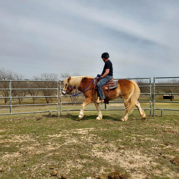 ℳ𝒶𝓇𝒸𝒽 ♦️𝐑𝐈𝐃𝐄𝐑'𝐒 𝐂𝐇𝐎𝐈𝐂𝐄♦️ Happening now thru MONDAY | MARCH 9th - Available EXCLUSIVELY on HorseBid's website! For more details and to register visit: www.Horsebid.com CONSIGNOR CONTACT: LB Equine Sales LLC 214-449-8028 LOCATION: Terrell, TX BREED: Haflinger REGISTERED: Yes REGISTERED NAME: An- Ultimatium YRF COLOR: Chestnut HEIGHT: 14.2 AGE: 13 GENDER: Gelding “Fabio” is just that — fabulous! A 13-year-old purebred registered Haflinger gelding with luxurious feathering and the sweetest disposition. There is something so striking about Fabs — we just can’t get enough of this cute guy. Fabio stands a sturdy 14.2H. He’s heavy-boned and strong as an ox in stature, yet kind and approachable. He has confidently packed larger husbands down the trail with ease and has proven himself a reliable trail mount year after year. He’s been with the same family for the past eight years and is now ready to bring his fun-loving character to your family farm. Honestly, Fabio should have a sign around his neck that says “Will Work for Cookies,” because this boy loves his treats! Warning: you may find yourself wanting to spend more time with Fabio in the barn, ring, and out on the trail than with your own husband. Fabio is happy-go-lucky, jolly, and just the right amount of goofy. If you’re looking for a friendly, charismatic, and gentle gelding — Fabio is your man. He’ll play with lead ropes, toss around balls, and splash happily in the water. He isn’t afraid of cows or wildlife and has frequently been used on a cattle ranch to check fences, sort cattle, and move pastures. He crosses water, navigates bridges, and steps into ravines confidently. He’s a total puppy dog on the ground — easy to catch, clip, tie, load, and back out of the trailer. He stands quietly for mounting and is well-mannered for the farrier and vet. He was recently body-clipped (standing in the cross ties for three hours with no twitch!). Over the years, he has mainly been a trail horse and has tolerated all sorts of silly shenanigans — including the owner’s son shooting arrows off his back while he stood like a statue. Fabio has been started in driving by a professional teamster, though he is not yet finished to cart. He also spent several months under the guidance of Elliot Holtzman and Caitie Holtzman of Versatile Horsemanship to further refine him under saddle. He has smooth, quality movement suitable for progressing up the levels in dressage and is currently schooling First Level. He is proficient in leg-yields, lengthenings, stretching in his circles, and simple changes. He can be a bit lazy if allowed, but he will happily step up into the trot and canter when asked. I consider him perfectly in the middle, not a racecar but not a deadhead plug either. He has a fantastic “whoa” button and comes right back down off your seat. Ride him in a snaffle, halter, or bosal — he is soft, responsive, and willing. He would also transition beautifully into a therapy-type home and is suitable and safe for my older clientele. Whether it’s short hacks around the property or long adventures through forest and plains, Fabio is confident and steady wherever you point him. I wouldn’t hesitate to load him up and head to any preserve, park, or country trail — he’s sure-footed, quiet, and has an excellent brain. He has also recently been used for lessons with novice children, where he proved obedient, tolerant, kind, and gentle. He has always been 100% sound and is currently barefoot. He has no leg blemishes, no known health issues, and does not require special supplements or maintenance. His AHR papers and bill of sale are in order and ready for transfer at the time of sale. A current vet statement of soundness, dental float chart, Coggins, and up-to-date vaccine records are all on file and available for viewing at your convenience. Located in Terrell, TX — we are happy to help coordinate shipping to any location.
