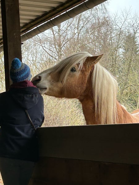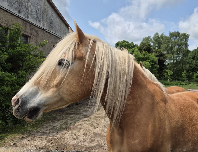 Mr. Bojangles – oder einfach Bo. Ein Name mit Geschichte – und ein Pferd mit Charakter. Ich glaube fest daran, dass es für jedes Pferd den richtigen Menschen gibt. Und so sehr ich mir wünsche, dieser Mensch für Bo zu sein – ich muss mir eingestehen, dass es mir an Erfahrung fehlt, um ihm das zu geben, was er jetzt noch braucht, um seine besten Jahre wirklich zu genießen. Diese Entscheidung fällt mir unendlich schwer – sie ist keine aus Ungeduld, sondern aus großer Zuneigung und Verantwortung. Schnell und heimlich hat er sich nämlich in mein Herz geschlichen. Bo ist ein wunderschöner, charakterstarker Haflinger-Wallach, 20 Jahre alt, mit einer beeindruckenden Präsenz und einem ganz eigenen Charme. Ich habe ihn vor knapp einem Jahr als ehemaliges Schulpferd übernommen – ruhig, ausgeglichen, brav im Umgang (so seine Anzeige). Er weiß, was er will und er weiß auch, wie er es bekommt – ein kluger, erfahrener Kerl, der Menschen braucht, die mit Ruhe, Wissen und klarer Kommunikation führen können. Bo in Kürze: • Haflinger-Wallach, 20 Jahre • kleine AKU aus 2024 liegt vor (unauffällig) • aktuell Barhuf, Hufe in gutem Zustand (zuvor vorne beschlagen, problemlos umgestellt) • regelmäßig entwurmt und geimpft • wird im Offenstall gehalten – das wünsche ich mir auch für seine Zukunft • Weidegang begrenzt (Haflinger-typisch – Figur und Futterhaushalt 😉) • bekommt normales Heu, keine Besonderheiten bei Fütterung oder Haltung Im Umgang: • absolut brav beim Putzen, Satteln, Auftrensen, Hufe geben – steht ruhig und gelassen • Hufschmied und Anhängerfahren sind kein Problem • Ranghoch in der gemischten Herde, aber ruhig und souverän – führt über Präsenz, nicht über Dominanz • beim Spaziergang in der Gruppe cool und verlässlich, alleine etwas aufgeregter – da fehlt einfach noch Vertrauen • Longieren, Bodenarbeit und Freiarbeit machen wir regelmäßig (auf Hobbyniveau) Was man wissen sollte: Ich kann über seinen genauen Ausbildungsstand leider keine verlässlichen Angaben machen – ich selbst bin keine erfahrene Reiterin. Bo kann buckeln – nicht bösartig, aber für unerfahrene Reiter:innen herausfordernd. Er braucht jemanden, der Pferde lesen kann, Ruhe, Erfahrung und ein gutes Gefühl für Körpersprache mitbringt – dann wird er ein wunderbarer, verlässlicher Partner mit viel Herz. ➡️ Bo ist kein Anfängerpferd. Er sucht eine erfahrene, feinfühlige Person, die ihm Sicherheit gibt und mit Geduld und Vertrauen eine echte Partnerschaft aufbaut. Mein Wunsch für ihn: Ich wünsche mir für Bo ein Zuhause, in dem er ernst genommen, verstanden und mit Herz gefördert wird. Für ihn sehe ich lockere Ausritte im Gelände in allen Gangarten, mit einem Menschen, der ihm Sicherheit vermittelt und bei dem er einfach er selbst sein darf – ruhig, aufmerksam und die coole Socke, die er ist. Gerne kann man ihn über einen längeren Zeitraum kennenlernen – mir ist nicht wichtig, dass es schnell geht, sondern dass es richtig wird. Wenn du beim Lesen spürst, dass dich dieser Haflinger berührt, dann melde dich gerne. Ich erzähle dir mehr über ihn, über uns – und darüber, warum er für mich immer Mr. Bojangles bleiben wird.