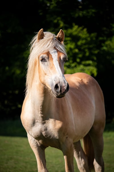 Wuesenzauber is an exceptionally charming, friendly, and personable young gelding. He comes from our breeding program, was born in March 2024, and is raised on our farm. He was gelded in spring 2025 and spent the summer fully on lush pasture with his peers. He possesses outstanding gaits and a striking chestnut coat with a white blaze and white leg markings. He is tetanus vaccinated and regularly dewormed as part of his health care. For questions, please call 01577 4985868.