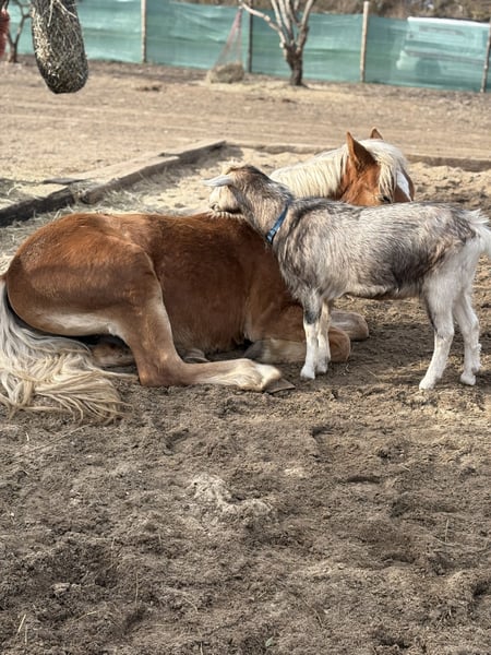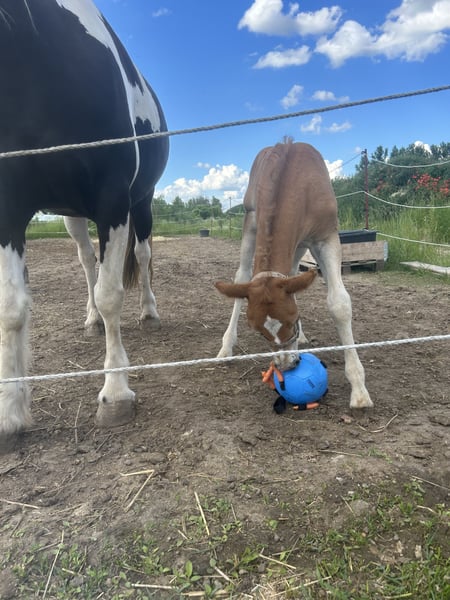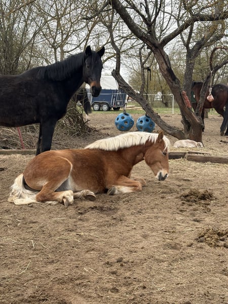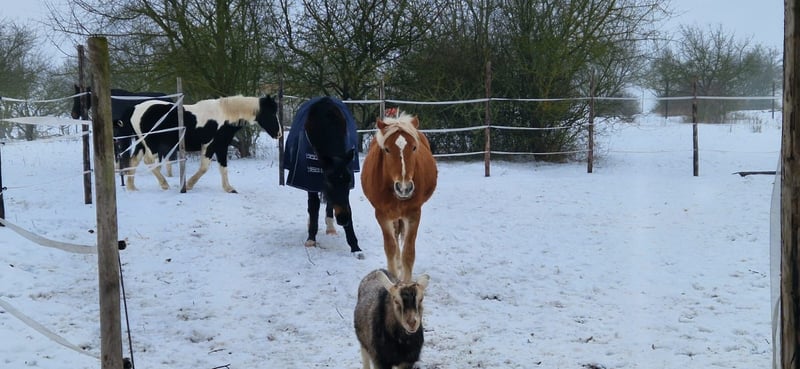Mein Pablo ist jetzt 2 Jahre alt und wurde im Dezember kastriert. Seitdem ist er in einer Wallachgruppe im Offenstall. Vorher stand er mit Gleichaltrigen auf der Fohlenkoppel.