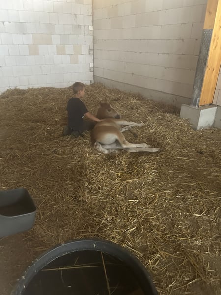 Er ist ein unglaublich unerschrockener , menschbezogener und lernwilliger Wallach, der bereits jetzt Aufmerksamkeit einfordert und etwas machen möchte. Natürlich nicht so lange und so oft wie die großen, aber er hat Freude an Bodenarbeit, er kann auch longiert werden und reagiert hier fein auf Stimme. Spazieren liebt er und ist hier sehr unerschrocken. Wir müssen an einer Landstraße entlang, bevor wir ins Gelände kommen. Er ist bereits lieb Hänger gefahren und ganz einfach rein stolziert. Außerdem mag er Schrecktraining und lässt sich von unserer Hufbearbeiterin alle 5 Wochen mit der Flex behandeln. Er ist geimpft und besitzt natürlich einen Pass.