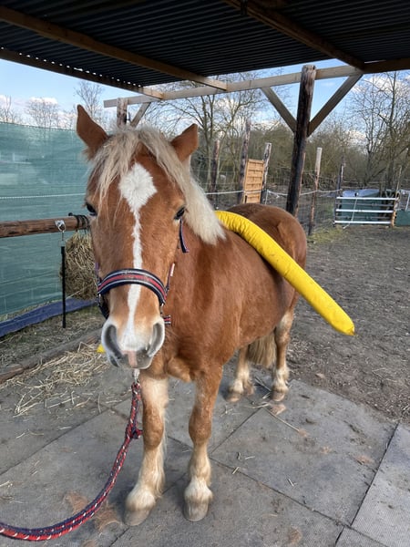 Wir haben ihm auch schon einmal ein leichtes Reitpad aufgelegt , auch das war für ihn komplett unspektakulär. Er kennt jegliche Baumaschinen, Kinder und Hunde.