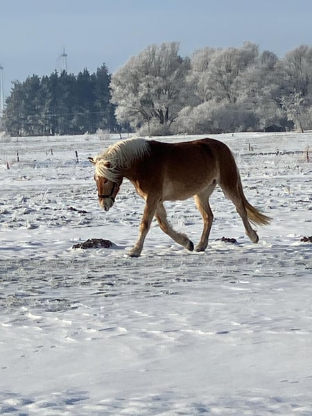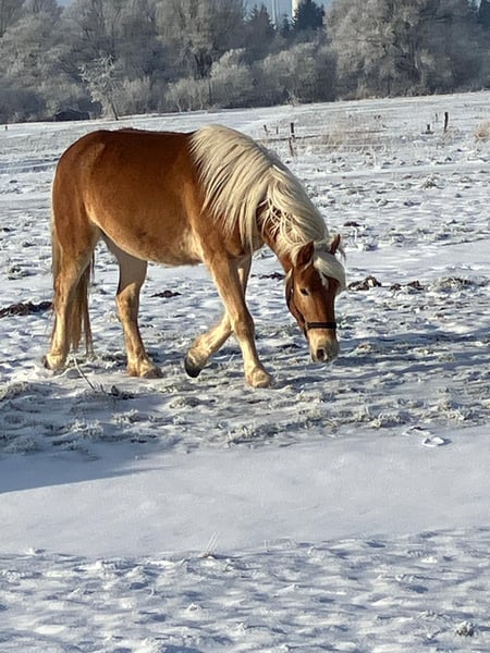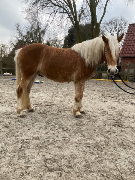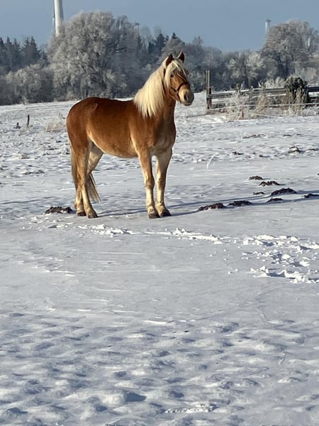 Bonar ist ein bildhübscher Haflinger-Wallach, geboren im April 2022, mit einem Stockmaß von ca. 150 cm. Er ist korrekt gebaut, kompakt und gesund und überzeugt durch sein harmonisches Gesamtbild. Bonar wuchs unter besten Bedingungen und mit viel Liebe auf und besitzt einen besonders lieben, menschenbezogenen Charakter. Er ist neugierig, ruhig, gelassen und nicht schreckhaft. Im täglichen Umgang zeigt er sich stets brav, lernwillig und aufgeschlossen und bringt ein tolles Temperament mit. Der Wallach ist sozial verträglich, steht in einer gemischten Herde und kennt die Offenstallhaltung mit großem Paddock. Beim Tierarzt, beim Schmied sowie beim Verladen ist er brav und zuverlässig, fährt Anhänger und lässt sich auch alleine problemlos verladen. Bonar ist regelmäßig geimpft und im westfälischen Pferdestammbuch eingetragen. In seiner Ausbildung ist er bereits angeritten und geht brav unter dem Sattel in allen drei Grundgangarten. Er kennt sowohl den Western- als auch den Englischsattel und zeigt sich dabei stets kooperativ und bemüht. Mit seiner positiven Einstellung, seiner Gelassenheit und seiner guten Auffassungsgabe ist er ein toller Youngster, der bei weiterer Ausbildung vielseitig einsetzbar sein wird. Bonar eignet sich ideal für jemanden, der sich gerne gemeinsam mit seinem vierbeinigen Partner weiterentwickeln möchte und dabei Wert auf Charakter, Zuverlässigkeit und Qualität legt.