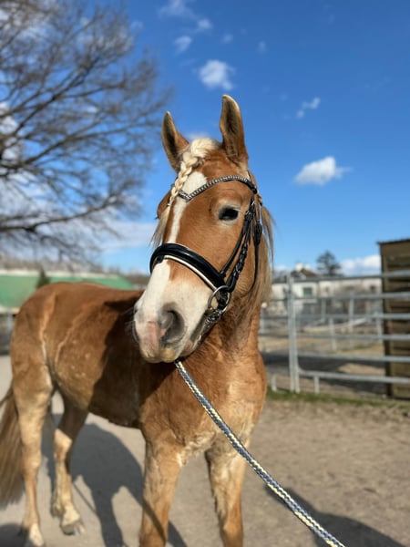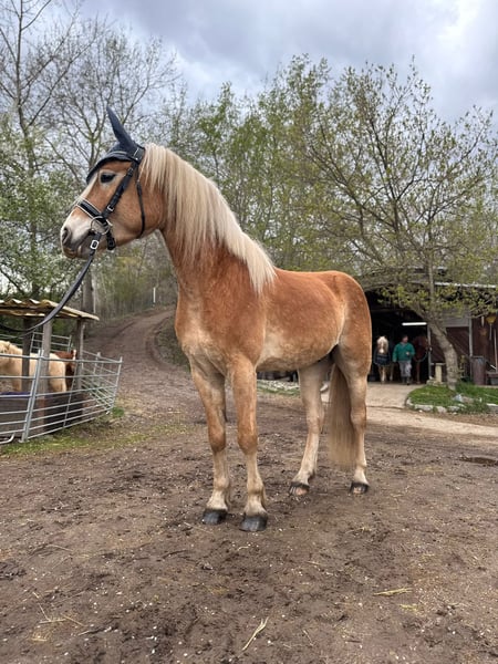 For sale is a young Haflinger gelding, born in April 2022, currently standing at 1.51 meters (approximately 15.0 hh). Amadeus has a quick learning ability and picks up new skills remarkably fast. His training level is approaching A-level. Currently, we are working on lateral movements and leg-yield exercises. Outside the riding arena, Amadeus also proves to be very steady-minded: he is familiar with walks, enjoys water crossings, and remains completely relaxed in traffic. Tractors, dogs, or busy streets do not disturb his composure. He is accustomed to both open stable management and box stalls with daily turnout. He is a barefoot horse, regularly vaccinated and dewormed. Accessories can be purchased additionally. Please contact via WhatsApp if genuinely interested!