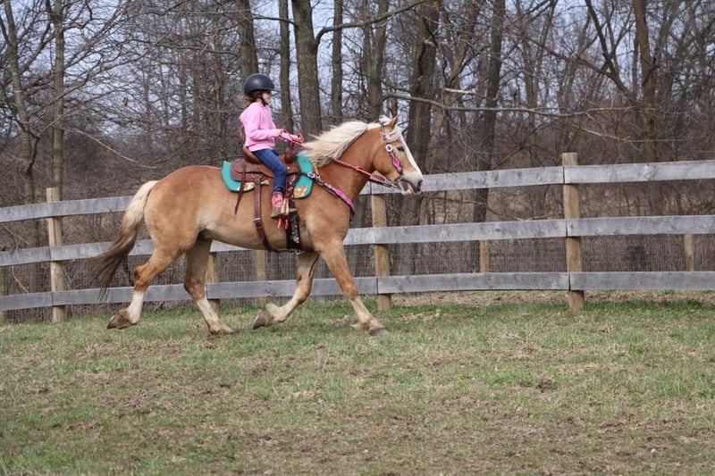 ONLINE AUCTION Place your bids at www.PlatinumEquineAuction.com Starting Bid $3500 Auction ends June 1st, 2025 Need a new saddle? Check out White Rock Saddles on our website or Facebook! Meet Duke as we call him! Here’s a registered haflinger that will be hard to beat. With his double mane and long blonde tail he’s as pretty as you would expect, if a horse with his pedigree. Duke is a registered American Haflinger gelding who stands 14.1hh at 4 years old. He is beautifully bred with MIDAS TOUCH and NEIMAN MARCUS on his papers. You’ll put a lot of miles on your truck to find one like him. He’s solid and very dependable. He has nice sporty conformation. Duke walk trot and canters with ease. Duke knows both her leads and has great transitions both upward and downward. All of his gaits are smooth and comfy. Duke has a heart of gold and aims to please every time. He has a quiet with a go with the flow temperament. He has recently started over fences and is a natural at jumping. He holds a slow and steady canter to the jumps. Duke is currently jumping 2ft but he has potential to jump 2’6”. Duke also rides western and trail rides like a dream. He is confident out in the woods. While you’re riding out alone or in a group Duke is always down for a trail ride. Duke is not the spooky type, not much phases him. He has been hauled to different state and metro parks in Michigan, Ohio, and Indiana. He has seen the sites and has all the experience. Duke is also broke to drive. He pulls a cart or buggy and is easy to drive around. On the ground he is patient and respectful. He likes people and loves to show off his personality! Duke even lays down on command! He stands for mounting/dismounting, grooming, and bathing. Duke plays well with other horses and he is an easy keeper! Duke is overall so sweet and very willing! He is smart and learns new things quickly. Duke is an all around girl. He is great for kids and adults on the ground and undersaddle. Please contact Ellesse Schwartz at 248-390-6831 for more information. He is Located in Howell, Michigan 48855. ONLINE AUCTION Place your bids at www.PlatinumEquineAuction.com Starting Bid $3500 Auction ends June 1st, 2025 Need a new saddle? Check out White Rock Saddles on our website or Facebook!