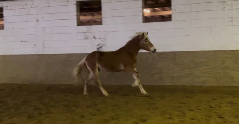 Wolkenstein is a very gentle Haflinger. He does not fit the typical stubborn Haflinger stereotype but is rather a refined type. Sensitive, yet not explosive. He is securely lunged, stands patiently during mounting and dismounting, and has already successfully mastered his first trot steps with a rider. We see him more as a one-owner horse. The direction of his training is entirely up to his new owner: Wolkenstein already possesses all the basic groundwork. He can be visited by appointment after a phone call. He is currently located in Jülich.