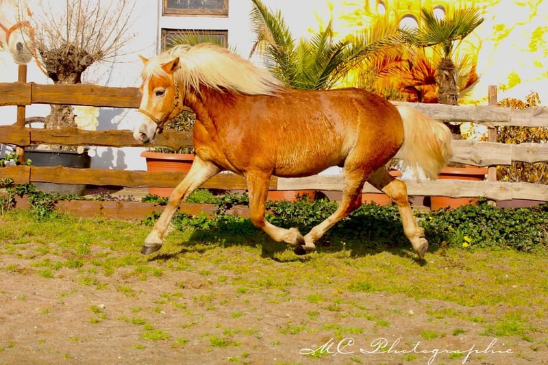 Dieser junge Haflinger besticht nicht nur durch seine auffällige Farbe und sein gut proportioniertes Äußeres, sondern auch durch sein angenehmes Wesen. Als Wallach ist er ausgeglichen und gutmütig, was ihn zum idealen Freizeitpferd macht.