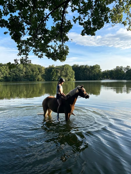 Nous recherchons pour notre adorable Haflinger gelding presque âgé de 6 ans, Snoopy, né le 26 mai 2020, un nouveau foyer aimant. Il a été mesuré à 1,44 m en décembre 2024. Comme notre fille (âgée de 15 ans) mesure 1,80 m, il devient malheureusement trop petit pour elle. Snoopy a déjà été doucement monté en selle, c’est un Haflinger sportif avec trois allures de base très bonnes. Lorsqu’on le mène à la longe, qu’on le brosse ou qu’on le longe, il est très proche des humains, attentif et courageux. En selle, en indoor, en outdoor, seul ou en groupe, nous le trouvons très confiant et bien dressé. Il a de l’expérience en compétition, allant de la reprise de dressage jusqu’à la E-Dressage, où il a déjà été placé. Récemment, il a également commencé l’entraînement au saut d’obstacles et a déjà participé à des concours, où il a été également placé. Snoopy montre beaucoup de plaisir lorsqu’il saute. Il pardonne aussi les erreurs de son cavalier et aide à ajuster les distances inappropriées. Il connaît le box et le paddock, et il s’entend très bien avec d’autres chevaux et poneys (il est plutôt de rang inférieur). Il est calme lors du pansage et se laisse facilement charger dans le van. En raison de son jeune âge, Snoopy n’est pas un poney débutant à lui seul, mais avec la bonne guidance, c’est un véritable poney de rêve, idéal pour un enfant ambitieux souhaitant débuter en compétition. Ce n’est pas une vente d’urgence, nous prenons notre temps pour qu’il trouve une famille aimante.