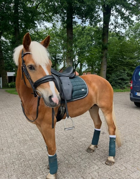 Wir suchen für unseren super lieben fast 6 jährigen Haflinger Wallach Snoopy, geboren am 26.05.2020, ein neues liebevolles Zuhause. Er wurde im Dezember 2024 mit 1,44 m eingemessen. Da unsere Tochter (15 Jahre) 1,80 m groß ist, wird er nun leider zu klein. Snoopy wurde schonend angeritten, er ist ein sportlicher Haflinger mit 3 sehr guten Grundgangarten. Beim Führen, Putzen und Longieren ist er sehr menschenbezogen, aufmerksam und unerschrocken. Beim Reiten in der Halle, auf dem Platz und im Gelände, alleine oder in der Gruppe, erleben wir ihn sehr unerschrocken und brav. Er ist turniererfahren, von Dressur WB bis E-Dressur und wurde auch bereits platziert. Seit kurzem ist er auch im Sprungtraining und wurde hier auch schon auf Turnieren vorgestellt und platziert. Beim Springen zeigt Snoopy sehr viel Freude. Er verzeiht seinem Reiter auch Fehler und hilft bei unpassenden Distanzen mit. Snoopy kennt Offenstall und Box, er ist sehr verträglich mit anderen Pferden und Ponys. (Ist eher rangniedrig). Er ist brav beim Schmid und lässt sich gut verladen. Nur aufgrund seines jungen Alters, ist Snoopy kein reines Anfängerpony, aber mit der richtigen Führung ein echtes Traumpony, und das optimale Pony um einem ambitioniertem Kind den Start ins Turnierleben zu ermöglichen. Dies ist kein Notverkauf, und wir lassen uns Zeit, bis er in liebevolle Hände kommt.