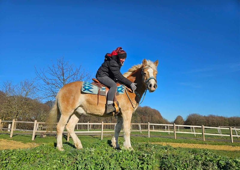 Haflinger-Wallach Tom brav, gelassen & ein echtes Freizeitpony Eckdaten: • Name: Tom • Rasse: Haflinger • Geschlecht: Wallach • Alter: 6 Jahre • Stockmaß: ca. 1,50 • Ausbildungsstand: Freizeitpony, geritten im Gelände • Preis: 5900,- Zum Verkauf steht unser hübscher Haflinger-Wallach „Tom“ ein ehrlicher, zuverlässiger und liebevoller Partner, der mit seinem charmanten Wesen und seiner coolen Art begeistert. Tom ist: – absolut brav und unkompliziert im täglichen Umgang – ruhig, freundlich und immer gut gelaunt – geht sowohl alleine als auch in der Gruppe entspannt ins Gelände – kennt Kinder, Hunde und Landmaschinen – steht brav beim Putzen, Satteln und Schmied – ein echt tolles Pony, das Freude an der Arbeit und am Miteinander hat Mit seinem ausgeglichenen Charakter und seiner Gelassenheit ist Toni das perfekte Freizeitpony für Reiter, die ein zuverlässiges, nervenstarkes und unkompliziertes Pferd suchen – ideal für Ausritte, Freizeit oder Bodenarbeit. Perfekt für: Freizeitreiter, Familien oder Wiedereinsteiger, die ein sicheres, treues und freundliches Pony suchen, mit dem man einfach Spaß haben kann. Unsere Pferde: – regelmäßig entwurmt – vom Schmied & Osteopathen betreut - AKU-MICROCHIP -E-PAß ist immer dabei . Hofladen: Zubehör, Sättel & Trensen erhältlich Transport auf Wunsch günstig organisiert ✅ Unser Service: – 3 Monate Umtauschrecht – Proberitt: 35 €, jedes weitere Pferd 25 € (beim Kauf am selben Tag angerechnet) – 100 € Sofort-Rabatt bei Abholung/Transport am selben Tag – Persönliche & ehrliche Beratung Anfragen bitte nur telefonisch: 0171 – 4001968 Täglich erreichbar: 8–20 Uhr ⚠️ Keine E-Mail oder WhatsApp ⚠️ Alle Angaben ohne Gewähr