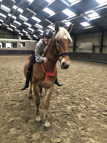Balou is een 7-jarige ruin van 1.60m, afkomstig uit Hongarije en sinds begin 2023 in Nederland. Over Balou: Balou is een echte werker en laat zien dat hij graag wilt. Hij heeft nog weinig ervaring en heeft dus nog wat begeleiding nodig. Hij gaat goed op veel afwisseling. Elke dag rijden in de bak is hij na een tijdje beu. Af en toe een sprongetje maken vindt hij ook leuk. Hij is nog nooit naar buiten geweest en dus ook niet verkeersmak. Onze buitenbak en longeercirkel staat aan de weg. Maar wanneer er auto’s, fietsers of groot verkeer langskomen kijkt hij er nauwelijks van op. Begin oktober 2025 zijn we met hem voor het eerst aan de hand naar het strandje geweest (500m lopen van stal). We zijn maar 15 min weggeweest maar was voor hem lang genoeg. Hij vond het erg spannend maar het ging wel heel erg goed. Omdat we alleen tussen oktober en april op het strand mogen met honden en paarden was het ook heel druk met loslopende honden. Hierdoor bouwde hij wel veel spanning op. Hij luistert naar zijn naam en komt naar je toe lopen als je hem roept. Ook met longeren gaat hij goed op je stem en reageert op de commando’s. Karakter: Balou is een echte persoonlijkheid. Een knuffelkont die graag contact zoekt en zich soms letterlijk tegen je aan komt hangen. Balou is niet geschikt voor kinderen of beginnende ruiters, vanwege zijn soms onvoorspelbare gedrag en forse kracht. Aan de hand kan hij uitdagend zijn. Soms loopt hij keurig met je mee, maar op andere momenten trekt hij of gaat hij rennen. Een hengstenketting is daarom echt noodzakelijk. Dit gaat de laatste tijd wel steeds beter en begint hij steeds meer lief achter je aan te lopen. Ook heeft Balou een uniek en grappig trekje: hij vindt het ontzettend leuk als je met zijn tong speelt. Hij kan daar echt van genieten en het werkt vaak ontspannend voor hem. Het zegt veel over zijn nieuwsgierige, soms wat ondeugende karakter. Wat zoekt Balou? Balou heeft een ervaren, consequente ruiter of begeleider nodig die stevig in zijn/haar schoenen staat. Iemand die hem verder wil opleiden, duidelijke grenzen kan stellen en voldoende tijd heeft om met hem te werken. Met de juiste persoon en aanpak kan Balou echt een fijn, werkwillig paard worden. Hij wordt aangeboden voor recreatief gebruik – dus voor iemand die graag ontspannen met zijn paard wil werken, buitenritten wil maken, eventueel aan de slag wil gaan met grondwerk of mennen, maar geen sportambities heeft. maar op zoek is naar een bijzondere pony om rustig en bewust mee aan de slag te gaan. Waarom verkoop ik hem? Met pijn in mijn hart heb ik helaas de beslissing moeten nemen om Balou te verkopen omdat ik merk dat de klik tussen ons weg is. Balou verdient iemand met wie hij die klik wel gaat krijgen, iemand die met frisse energie en liefde met hem verder wil. Iemand die daar de tijd voor heeft en die hem de begeleiding kan geven die hij nodig heeft. Met rijden kent hij de basis maar moet nog goed doorgereden worden om het echt onder de knie te krijgen. Ook denken we dat hij vroeger voor de kar heeft gestaan. Ik denk dat als je dit opnieuw zou oppakken/aanleren dat je er een leuk menpaard van kan maken. Ik zoek een goed huisje voor hem met iemand waar hij verder getraind kan worden. Iemand die daar de tijd, ervaring en geduld voor heeft. Als hij het eenmaal onder de knie heeft dan is het echt een top paard en kan je alles met hem. Extra informatie. - in november 2023 is Balou klinisch en röntgenlogisch goed gekeurd op benen en hoeven. Rapport en foto's zijn aanwezig. Opnieuw keuren is voor eigen kosten. - Balou heeft elk jaar zijn verplichte entingen gehad. - Begin 2024 zijn zijn wolfskiezen getrokken. Oktober 2025 heeft hij weer een gebitbehandeling gehad. Dierenarts gaf aan dat er bij hem weinig hoefde te gebeuren en dat hij prima om de 1,5/2 jaar gedaan hoeft te worden. - elke 8 weken wordt hij bekapt. Hij staat niet op ijzers. - filmpjes van longeren of rijden beschikbaar. - bij de koop van Balou kan je ook spullen overnemen. Waaronder zadel en hoofdstel. We kunnen samen even kijken wat je wilt hebben. - geen stalgebreken. - super lief met andere paarden in de wei.