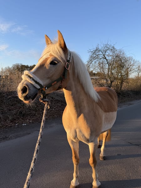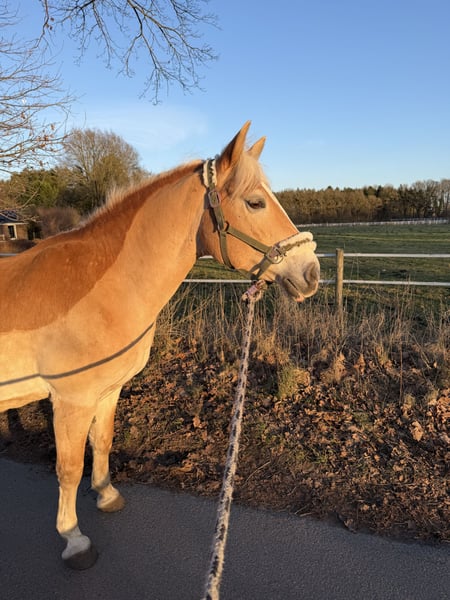 Zum Verkauf steht „Ravel“ eine liebevolle Haflinger Stute Ravel macht in jeder Disziplin Spaß und ist ein echtes Verlasspony. Ob alleine oder in einer Gruppe ausreiten, beides kein Problem. Sie lässt sich problemlos mit oder ohne Ausbinder reiten und ist stets motiviert alles richtig zu machen! Trotzdem muss sie weiter ausgebildet werden, da sie viel im Gelände unterwegs war. Dressur ist sie auf soliden A Niveau In Freispringen zeigt sie sich begeistert und schafft auch mal locker einen 1.10m Sprung. Unter dem Reiter muss das Springen noch weiter gefördert werden, aber auch da zeig sie sich positiv und lernwillig! Uns begeistert sie jeden Tag mit ihrer zutraulichen und offenen Art Neuem gegenüber! Ravel kennt es alleine oder in einer Gruppe draußen zu stehen. Nachts ist sie in der Box. Bei Interesse schreiben Sie gerne eine Nachricht mit einer kleinen Vorstellung.
