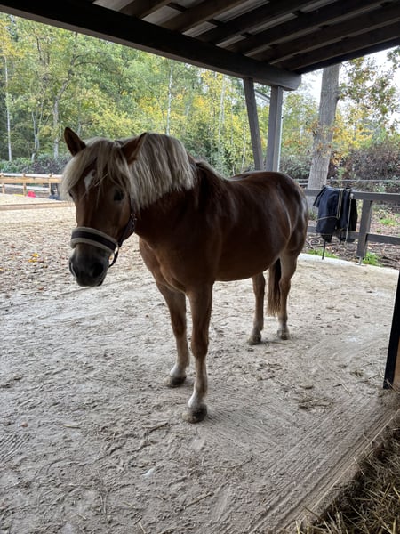 Wij bieden onze Haflinger-mix merrie te koop aan, waarschijnlijk een Poolse koudbloed, zij heeft een Poolse paspoort! Geboren op 14-02-2014 in Polen. Ze is een zeer dominante merrie, wat helaas onze oude ponystute moet ondervinden. Daarnaast kan ze niet echt omgaan met ons 24/7 hooi. Daarom moeten we helaas zeggen: "Goed bedoeld is niet altijd goed gedaan" en zoeken we een nieuw thuis voor haar. Een kleine gezondheidscontrole uit oktober 2024 is beschikbaar! Er is een bloedonderzoek uit januari 2025 en röntgenfoto’s van de voorbenen, ze moet in het verleden last hebben gehad van hoefbevangenheid. Ook kampt ze momenteel met haar stofwisseling, helaas hebben we niet de tijd om haar goed te bewegen. Ze krijgt momenteel hooi, staat op stro in een open stal, maar kent ook de box. We voeren hoogwaardige mineralen en momenteel veel kruiden erbij. Ze heeft een consequente aanpak nodig die haar veiligheid geeft, dan gaat ze bijvoorbeeld ook alleen het terrein in! Ze moet weer getraind worden. Video’s en meer foto’s kunnen gerust worden opgestuurd!