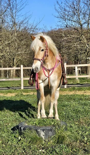 Achat d'une jument Haflinger calme, détendue et véritable poney de loisir Caractéristiques principales : • Nom : Diva • Race : Haflinger • Sexe : jument • Âge : 12 ans • Taille : environ 1,50 m • Niveau de dressage : poney de loisir, monté en extérieur • Prix : 5900 € Nous proposons à la vente notre jolie jument Haflinger, DIVA, un partenaire sincère, fiable et affectueux, qui séduit par son caractère charmant et sa nature détendue. DIVA est : – parfaitement calme et facile à gérer au quotidien – douce, amicale et toujours de bonne humeur – monte sereinement aussi bien seule qu’en groupe en extérieur – connaît les enfants, les chiens et les machines agricoles – reste tranquille lors du pansage, du saddle et du maréchal-ferrant – un poney vraiment exceptionnel, qui aime son travail et la compagnie Grâce à son tempérament équilibré et sa sérénité, Toni est le poney de loisir idéal pour les cavaliers recherchant un cheval fiable, résistant au stress et facile à vivre – parfait pour les randonnées, les loisirs ou le travail à pied. Idéal pour : Cavaliers de loisir, familles ou cavaliers en reprise, cherchant un poney sûr, fidèle et amical, avec lequel on ne peut que s’amuser. Nos chevaux : – régulièrement vermifugés – suivis par le maréchal-ferrant et l’ostéopathe – toujours avec microchip et passeport électronique Espace boutique : Accessoires, selles et briderie disponibles Transport organisé à prix avantageux sur demande ✅ Notre service : – 3 mois de droit d’échange – Essai : 35 €, chaque cheval supplémentaire 25 € (déduit en cas d’achat le même jour) – 100 € de remise immédiate lors de la récupération ou du transport le jour même – Conseils personnels et honnêtes Pour toute demande, merci de nous contacter uniquement par téléphone : 0171 – 4001968 Disponible tous les jours de 8h à 20h ⚠️ Pas de mails ni WhatsApp ⚠️ Toutes les informations sont données sans garantie