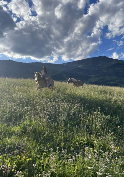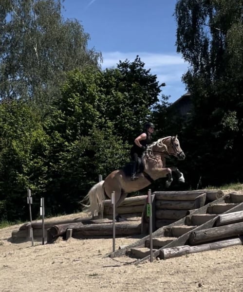 Im Gelände ist sie besonders hervorzuheben: Ob alleine, in der Gruppe oder auch bei Begegnungen mit freilaufenden Pferden – Rubinia bleibt stets ruhig, gelassen und souverän. Der Wanderreiter wurde erfolgreich mit ihr absolviert, was ihre Ausdauer und ihr ausgeglichenes Wesen unterstreicht.