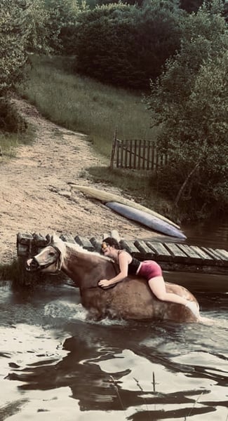 Im Umgang ist sie unkompliziert und zuverlässig, selbstverständlich schmiede- sowie verladefromm.