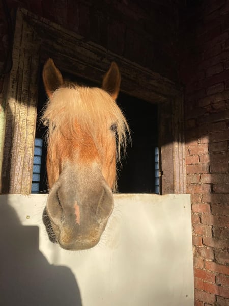 C’est une jument Haflinger de 15 ans, mesurant environ 1,50 m. Sky est plutôt dominante au sein du troupeau.