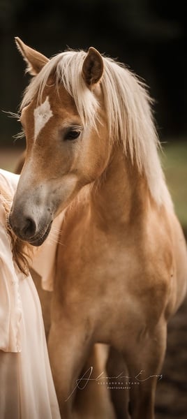 Due to personal reasons, I unfortunately have to give up my Haflinger mare born in 2024. She is currently 1.43 meters tall, and I estimate her final height to be over 1.50 meters. Last year, she was auctioned in Ebbs and was pre-evaluated with a 2A+ rating. She is a direct daughter of licensed Manhattan out of Ikaria, making her a half-sister to the world champion stallion licensed Amerigo. Ikaria herself is an elite mare. The mare moves above average and is very well-behaved. She loads onto the trailer, knows the farrier, and has a truly cool character. She is very people-oriented and loves to cuddle. Besides breeding, I can see her excelling in many disciplines. She is only being offered to the best hands. It is very difficult for me to part with her.