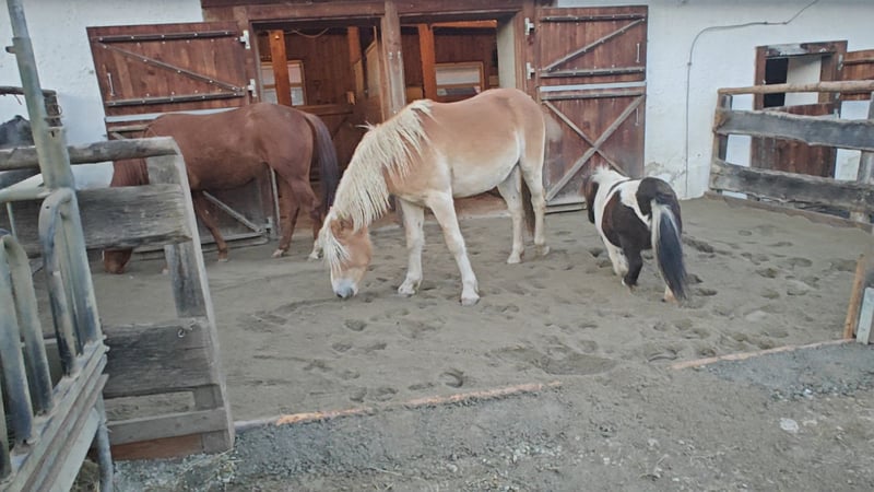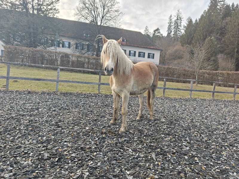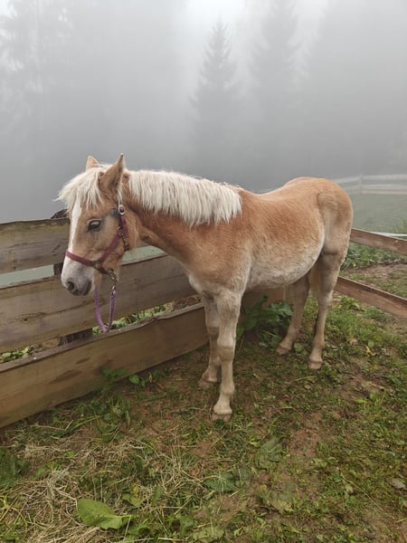 She is very people-oriented and loves to be groomed and petted. She is always the first to come over. She is familiar with trailer loading, hoof care, walks, and work in the arena. Currently measures 149 cm at the withers. Good pedigree She is mostly used to an open stable environment but is also comfortable in a box for short periods. Last summer, she spent time on pasture with peers. Lunging has already been introduced to her.