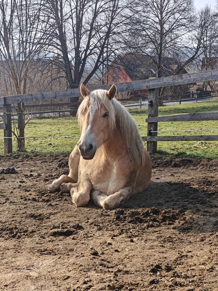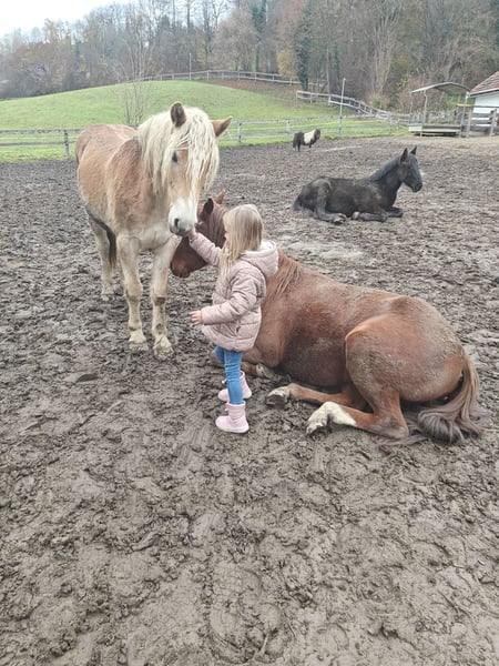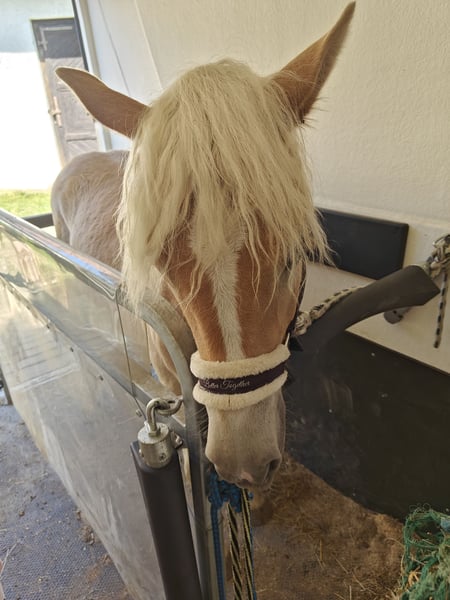 Sie ist sehr Menschenbezogen, liebt es geputzt und gekrault zu werden. Ist immer die erste die kommt. Kennt Hänger fahren, Hufschmied, spazieren und das Arbeiten am Platz. Momentanes Stockmaß 149cm. Gute Abstammung Kennt hauptsächlich Offenstall aber auch Box für zwischendurch. War letzten Sommer noch mit gleichaltrigen auf der Sommerweide. Wurde schon das longieren gezeigt