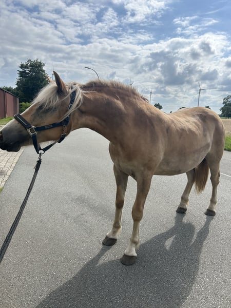 Biete meine 3 Jährige Haflinger Stute an aufgrund privater Umstände. Bella ist ein unglaublich cooles Pferd und besticht jetzt schon durch ihre Gelassenheit und Arbeitsmotivation. Sie ist vom Boden top vorbereitet und kann nun angeritten werden, sie kennt Reitergewicht. Sie ist anlongiert und macht dies hervorragend, reagiert auf Körpersprache und Stimme. Seitengänge, Vorhand & Hinterhandwendung sind kein Fremdwort. Einparken kann sie ebenfalls. Sie ist unerschrocken und kennt hier das Leben auf einem Firmen gelände, LKW, Stapler und Trecker sind ihr geläufig. Spaziergänge sind ebenfalls möglich. Sie wird bereits gebisslos an der Hand gearbeitet und macht dies extrem gut. Sie ist verladefromm, geht regelmäßig zum Schmied und ist geimpft. Steht hier im Offenstall, dies sollte auch so bleiben. Bella hat im Sommer einen Juckreiz an der Mähne, dies wurde untersucht und es konnte kein Auslöser fest gestellt werden. Allergietest war nicht aussage kräftig. Bei mir trägt sie im Sommer eine Fliegendecke und ist damit Happy - seither keiner Probleme mehr. Sie hat keinen Juckreiz am Schweif oder an anderen sonst typischen Ekzem stellen. Bella geht nur in ein 5 Sterne Zuhause, sie wird nicht an Händler oder Schulbetriebe verkauft. Zudem ist sie kein Notverkauf. Ein zur Verfügung stellen wäre auch denkbar. Sie wird in den nächsten Wochen angeritten und somit wird der Preis nicht weiter fallen.