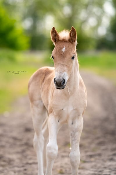 La meravigliosa Gaya è molto socievole e affettuosa. Conosce l'ABC del puledro ed è molto rispettosa. È familiare con tutti i suoni e le attività di un'azienda agricola. Conosce bambini e grandi gruppi di persone ed è sempre interessata a scoprire cose nuove! Ha un ottimo tipo e armonia. Muove con grande eleganza e qualità! È stata premiata con il premio per puledri, ottenendo 24,5 punti. Interessante sia per lo sport che per la riproduzione. Nelle ultime foto si vedono madre e padre!
