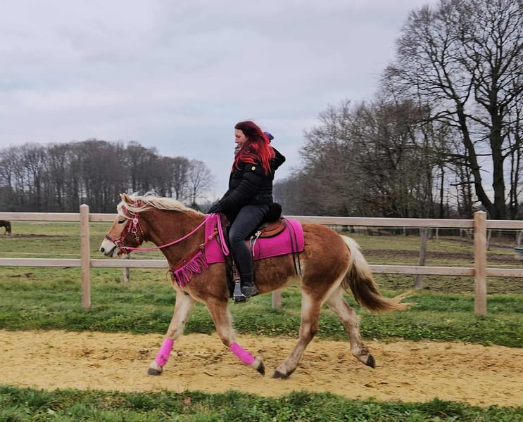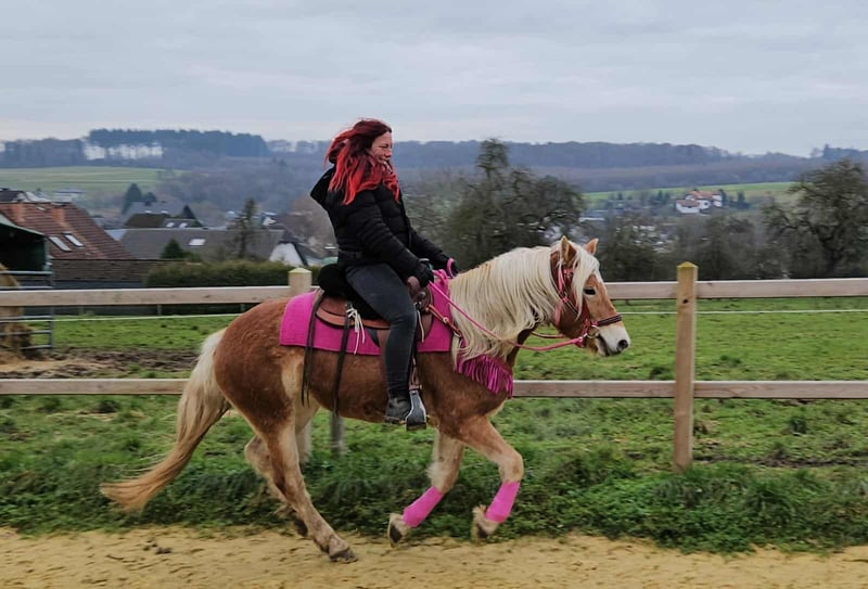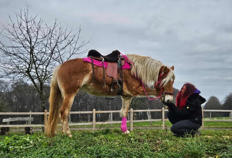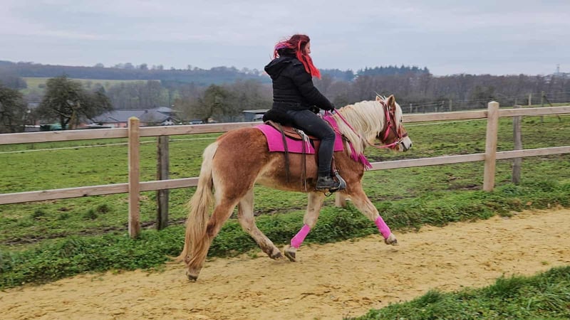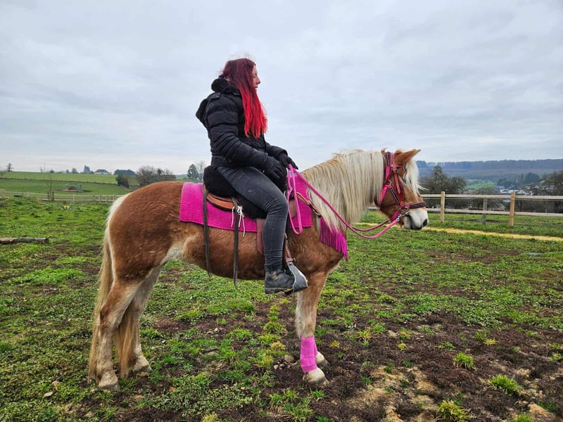 Haflinger-Stute MYRTHE brav, gelassen & ein echtes Freizeitpony • Name: MYRTHE • Rasse: Haflinger • Geschlecht: Stute • Alter: 3 Jahre • Stockmaß: ca. 1,50 • Ausbildungsstand: Freizeitpony, geritten im Gelände • Preis: 5500,- Zum Verkauf steht unser hübsche Haflinger-Stute ehrliche, junge und liebevolle, mit einem charmanten Wesen und seiner coolen Art begeistert. – absolut brav und unkompliziert im täglichen Umgang – ruhig, freundlich und immer gut gelaunt – kennt Kinder, Hunde und Landmaschinen – steht brav beim Putzen, Satteln und Schmied – ein echt tolles Pony, das Freude an der Arbeit und am Miteinander hat Perfekt für: Freizeitreiter, Familien oder die ein treues und freundliches Pony suchen, mit dem man einfach Spaß haben kann. Unsere Pferde: – regelmäßig entwurmt – vom Schmied & Osteopathen betreut -AKU dabei Hofladen: Zubehör, Sättel & Trensen erhältlich Transport auf Wunsch günstig organisiert ✅ Unser Service: – 3 Monate Umtauschrecht – Proberitt: 35 €, jedes weitere Pferd 25 € (beim Kauf am selben Tag angerechnet) – 100 € Sofort-Rabatt bei Abholung/Transport am selben Tag – Persönliche & ehrliche Beratung Anfragen bitte nur telefonisch: 0171 – 4001968 Täglich erreichbar: 8–20 Uhr ⚠️ Keine E-Mail oder WhatsApp ⚠️ Alle Angaben ohne Gewähr