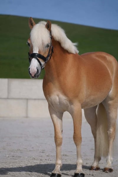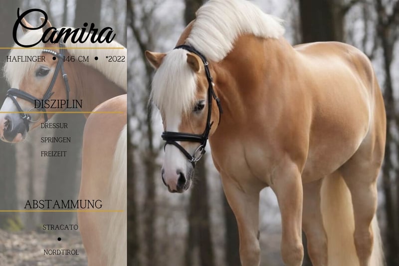 Camira is a beautiful Haflinger mare with full pedigree, descending from Stracato, Amadeus x Weltherr, Aras. She measures approximately 146 cm (14.1 hh) as of February 2026. *Camira* is a stunning mare with three very good gaits. She looks like a picture-perfect riding pony straight out of a book. She also has an excellent temperament—confident and completely honest. She already moves nicely in the arena, and with further training, she is sure to bring home many ribbons. She shows talent and enthusiasm over fences. She is already comfortable going out alone or in groups, and she handles unfamiliar environments calmly. Relaxation training and riding without a saddle are no problem for her. She is neither lazy nor too lively and enjoys working. We can also easily imagine her being suitable for less experienced riders, children, or teenagers, especially with a handler. She is very affectionate and equally easy to handle. Horse Trading Dederichs – Your Partner for Horse Buying Contact & Availability: Please inquire exclusively by phone at 0173/9792139 Monday – Friday: 9:00 a.m. – 6:00 p.m. Saturday: 9:00 a.m. – 3:00 p.m. Sunday: Closed Follow us on social media! Experience our daily work with the sale horses on Instagram, TikTok & Facebook at Pferdehandlung Dederichs Discount: Receive 5% – 10% off if you take your new dream horse immediately. Trial Riding & Demonstration: • Trial ride: €40 per horse (up to 2 riders), amount will be credited upon purchase • Holidays: Trial ride €50 • Demonstration by our trainers: €30 per horse (including lunging, ground work, etc.) Pre-Purchase Examination & Transport: • Many of our horses already have an pre-purchase exam (AKU) • You are welcome to bring your own veterinarian • We can also organize an examination for you • We are happy to assist with transport to your new home Other Horses for Sale: We have additional horses for sale in our stable that are not yet listed online. If your dream horse is not yet among them, please do not hesitate to contact us. Important Notes: • Height measurements are approximate and not precisely taken • All descriptions are subjective assessments by the seller and do not constitute guaranteed properties