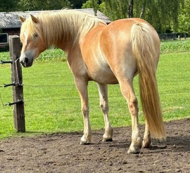 Wunderschöne 3-jährige Haflingerstute mit viel Potenzial sucht ihren Menschen ✨ Unsere liebe, typvolle Haflingerstute (3 Jahre)geb .April 2022... ist auf der Suche nach einem neuen, fördernden Zuhause. Sie ist sozialisiert, im Herdenverband aufgewachsen und zeigt sich im täglichen Umgang brav, freundlich und menschenbezogen. Obwohl sie noch roh ist, bringt sie bereits eine tolle Basis mit: ✔ halfterführig ✔ kennt ausgiebige Spaziergänge ✔ absolut unerschrocken im Straßenverkehr (auch bei LKWs) ✔ gelassen im Wald und in neuer Umgebung ✔ neugierig und lernwillig Sie meistert lange Spaziergänge souverän und zeigt sich dabei stets ruhig und zuverlässig. Neue Eindrücke verarbeitet sie entspannt und aufmerksam. Wie es sich für eine junge Stute gehört, hat sie jedoch auch ihren eigenen Kopf. Hier kann es beim Hufe geben schon mal zur Diskussion kommen Sie braucht daher eine konsequente, faire Bezugsperson mit klarer Struktur und Erfahrung im Umgang mit jungen Pferden. Für Anfänger ist sie nicht geeignet – in erfahrenen Händen wird sie jedoch eine treue Partnerin mit ganz besonderem Charakter. Wir können sie uns hervorragend vorstellen als: gelassenes Freizeitpferd sportliche Partnerin mit Zukunft vor der Kutsche oder auch als spätere Zuchtstute Sie vereint Nervenstärke, Charme und Entwicklungspotenzial – eine junge Stute mit viel Herz und Perspektive mit sehr guter Abstammung ! Bei ernsthaften Interesse gerne Kontaktaufnahme. Kein Notverkauf.