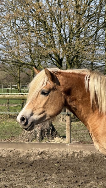 Haflinger-Stute Alexa ist artgerecht in einer Herde im wunderschönen Münsterland aufgewachsen. Die weitläufigen Wiesen und Weiden haben ihr Trittsicherheit und Gelassenheit mitgegeben, die man sich von einem Haflinger wünscht. Sie ist robust in einem Offenstall aufgewachsen, wird regelmäßig entwurmt und hat einen Equidenpass.