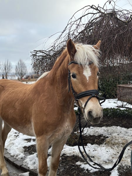 Deze charmante Haflinger merrie is geboren in 2021 en valt op door haar vriendelijke aard en haar karaktervolle uitstraling. Ze gedraagt zich altijd vriendelijk en kalm in de omgang, is goed gesocialiseerd en gemakkelijk te hanteren. Haar aangename karakter maakt haar een plezierige metgezel voor zowel ervaren ruiters als beginners.